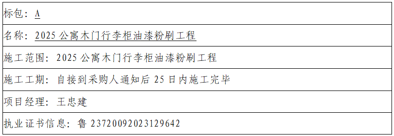 山东商务职业学院2025公寓木门行李柜油漆粉刷工程中标(成交)结果公告