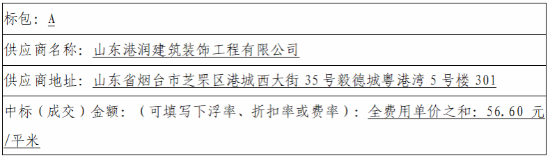 标包A:山东港润建筑装饰工程有限公司(93.68、93.68、95.18)、山东苑丰建筑装饰有限公司(82.32、82.82、86.32)、山东晟松建筑工程有限公司(90.21、92.21、93.71)