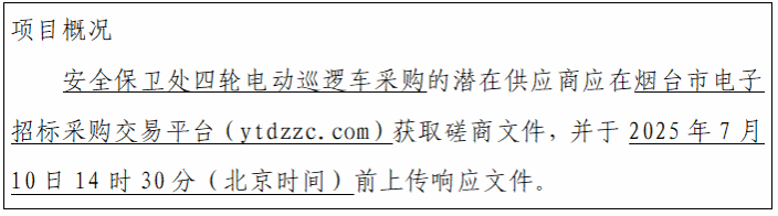 采购需求:本项目为安全保卫处四轮电动巡逻车采购,共分为1个包,具体内容详见竞争性磋商文件第二部分采购内容及相关要求。