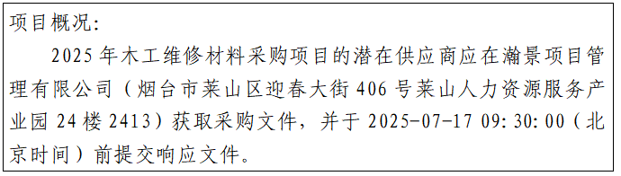 3.方式:根据山东省政府采购有关规定,凡有意参加本次政府采购的供应商必须在2025年7月11日17:30(北京时间)前访问“中国山东政府采购网(山东省政府采购信息公开平台)http://www.ccgp-shandong.gov.cn”进行注册并报名。注册并报名成功后,按照以下方式获取磋商文件:须将营业执照副本扫描件、所报项目名称、项目编号、项目联系人姓名、联系方式、汇款凭证电子版发至yantaihanjing123@163.com邮箱中。
