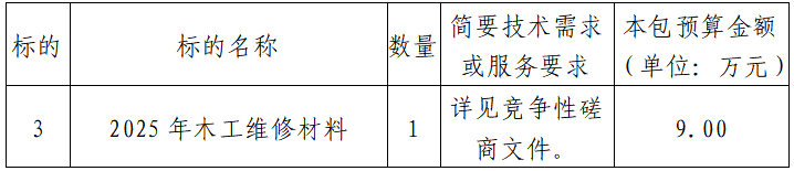 项目名称:2025年木工维修材料