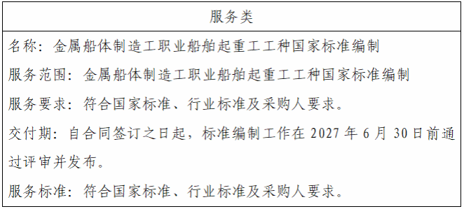 二、项目名称:金属船体制造工职业船舶起重工工种国家标准编制