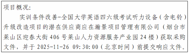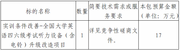 项目名称:实训条件改善-全国大学英语四六级考试听力设备(含电铃)升级改造项目
