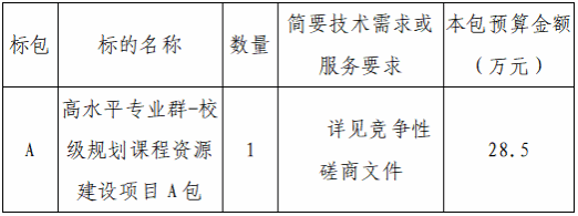 项目名称:高水平专业群-校级规划课程资源建设A包