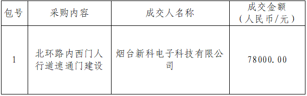 山东商务职业学院北环路内西门人行道速通门建设成交公告