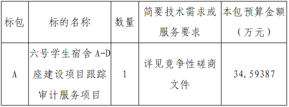 项目名称:六号学生宿舍A-D座建设项目跟踪审计服务项目