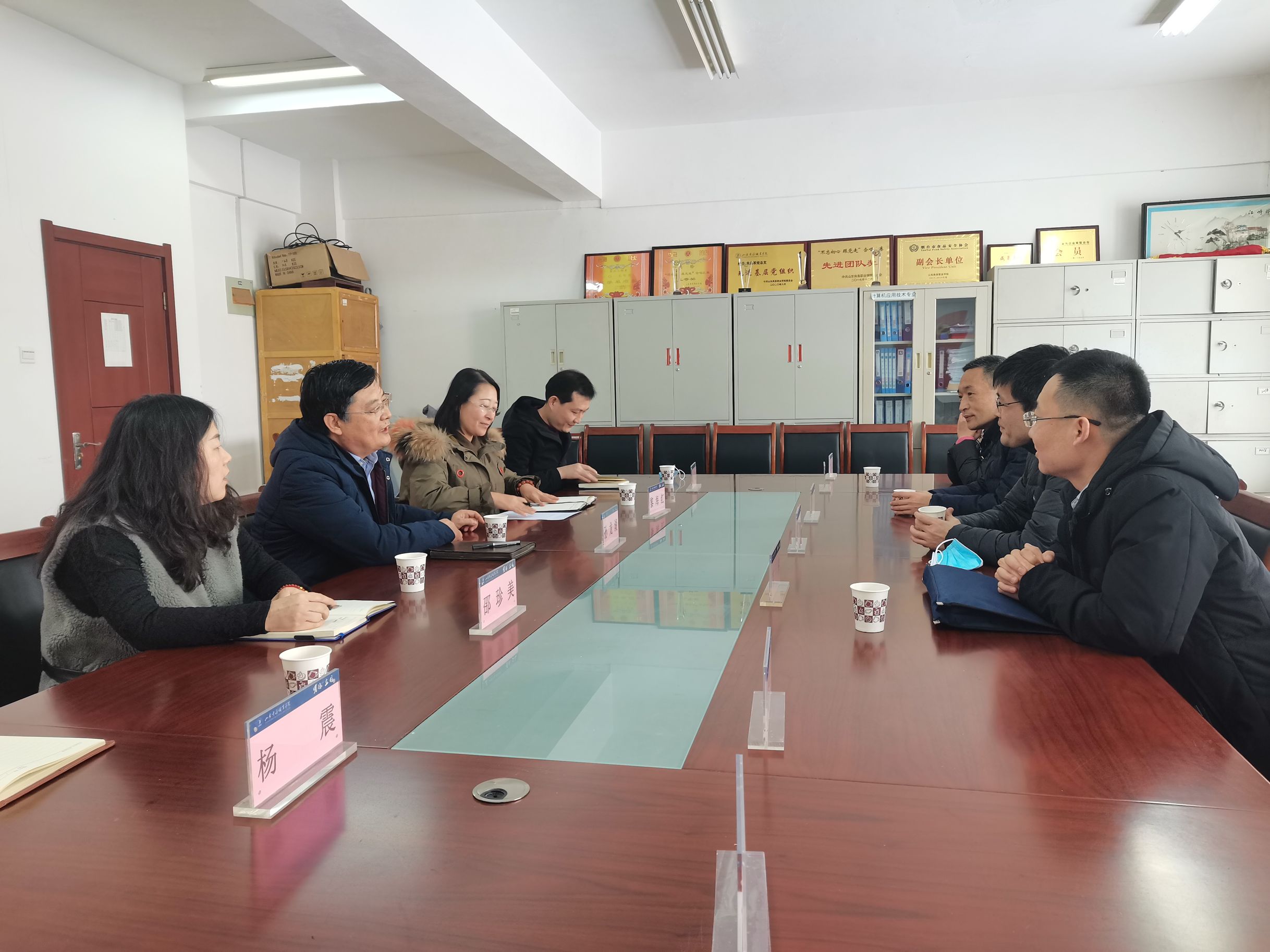 本站讯 2021年1月7日下午,国家级中职教育改革示范校—寿光市职业教育中心学校在副校长王长勇的带领下到访我校,与粮油食品学院探讨中高职3+2合作办学事宜,粮油食品学院党总支书记孙龙湖、院长黎海红、副院长邵珍美、副院长袁磊和教研室主任杨震与来访嘉宾展开了热烈而深入的交流。