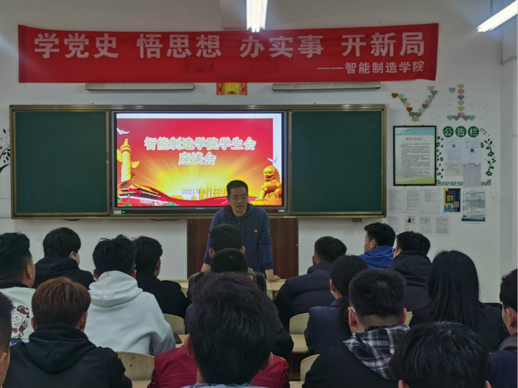 为更好地为广大师生做好服务、办好实事,按照《智能制造学院党总支党史学习教育“我为师生办实事”项目清单》工作安排,结合党史学习教育工作部署,智能制造学院通过学生座谈会提升服务水平。座谈会上,学生代表踊跃为“我为师生办实事”活动建言献策,提出科学规划晚自习时间、强化学风建设、拓宽师生交流渠道、增加课程思政过程中“学习强国”“青年大学习”等平台使用频次、优化学习资源配给等创新提议,与会老师认真听取了学生的发言,对同学们参加党史学习教育的初步成效予以充分肯定,并鼓励学生在广泛参与党史学习教育的同时努力做到“学史力行”。座谈会后,智能制造学院立即行动,建立包含党总支书记/院长邮箱、学生权益邮箱、学管副院长及各辅导员/班主任电话等信息的《在校日常生活通讯录》,并将其张贴于各个教室、宿舍内,畅通师生沟通渠道;鼓励各班级根据实际情况,在晚自习固定时间段运用“学习强国”APP开展党史学习教育。