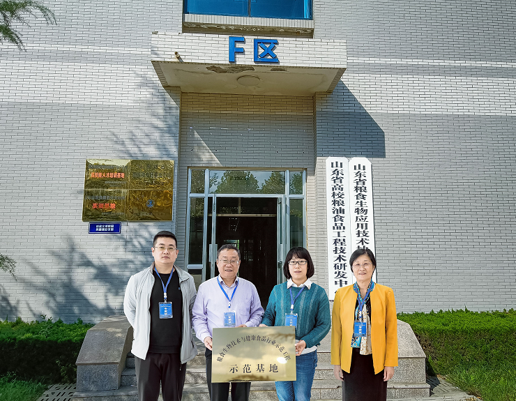 专家组先后前往山东商务职业学院粮油食品学院、山东华威药业有限公司和山东婴儿乐股份有限公司进行了主题交流、资料审核和现场察看。粮油食品学院黄丛聪博士从设备设施、资源平台、科研项目、科技创新等几个方面向专家组做了详细汇报。专家组一致认为我校的管理制度健全、科研设备设施先进、人员队伍组成合理,形成了以提高粮食和果蔬等农产品的生产效益和综合利用为重点,可开展粮食主要组分高效分离、功能性食品开发、生物新材料研发、粮农加工副产物增值转化、粮食质量检测与控制等关键技术的研究,授予了我校粮油食品学院“粮食生物技术与健康食品行业示范工程示范基地”牌匾。
