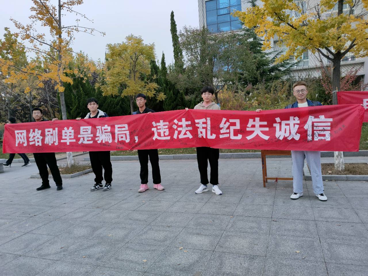 召开防诈骗专题会议及主题班会,从身边的实际案例入手,强调网络刷单的危害性和违法性,号召学生自觉抵制网络刷单,绷紧防范之弦,杜绝网络刷单现象的出现;举办防诈骗签名活动,动员全体学生广泛参与,同学们现场签名,做出承诺,共同为建设安全校园贡献自己的力量;开展防诈骗知识竞赛活动,通过以赛促学、学赛结合的方式,引导学生对于诈骗知识学实学透、入脑入心,筑牢防诈骗安全堡垒。