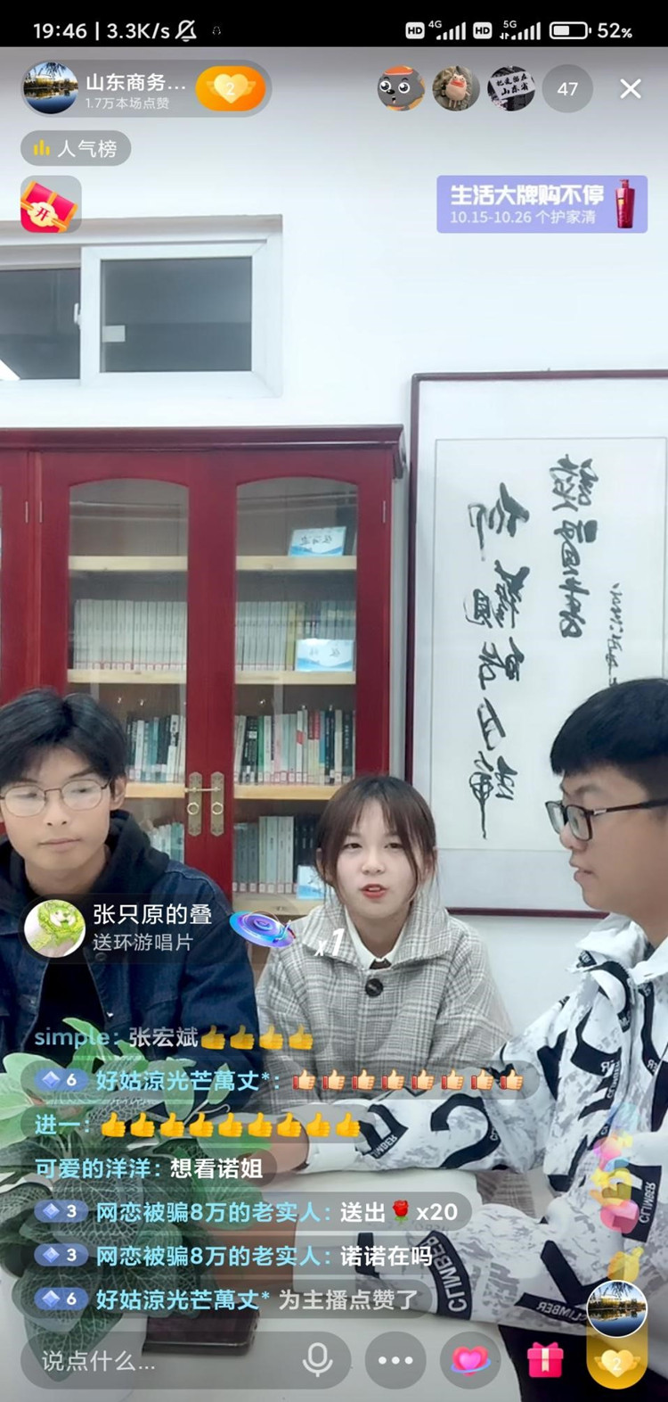 主题抖音直播,搭建沟通桥梁。时下,抖音直播深受年轻人喜爱,图书馆抓住机遇,在直播领域开辟了自己的路径。自新生入学以来,图书馆利用直播平台共举办直播10余场,帮助新生了解图书馆。新生季期间,图书馆策划举办多场主题直播,包括“我们的大学生活”,邀请21级新生谈自己的大学生活,以及对未来的展望;“我的书画人生”,邀请书画人生社的同学,普及书画知识,讲述自己的“书画人生”。直播中,粉丝们十分活跃,纷纷表示很喜欢图书馆这种“接地气”的交流方式。接下来,图书馆还将围绕同学们关心的话题陆续推出几场直播。