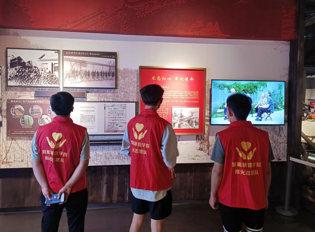 实践队首先来到胶东红色文化陈列馆,跟随着解说员的深情讲述,胶东红色文化犹如一幅巨型史料卷轴铺展开来。一张张珍贵的历史照片、一段段动人的英雄事迹、一件件珍藏的历史文物和各式精彩的高科技幻影成像,都生动地展现了胶东人民不屈的奋斗精神。