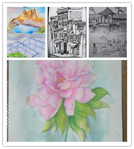 20级环艺专业学生孙凯琳说:“我绘画的这幅昆嵛山旁的乡村民居,是烟台市美丽乡村建设的缩影,希望通过画笔,让更多人了解烟台乡村的美丽,用色彩展现群众的幸福生活。”21级视觉专业学生吕雷朵说:“我绘画的是家乡菏泽的牡丹花,菏泽以牡丹而闻名,寄予对祖国繁荣昌盛、民族富强的美好祝愿。”