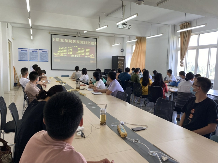 本站讯 9月8日下午,我校举行第38个教师节庆祝大会,表彰在教育教学等各项工作中取得突出成绩的教师,信息工程学院组织全体教师在信息实验楼E503分会场收看了大会直播。