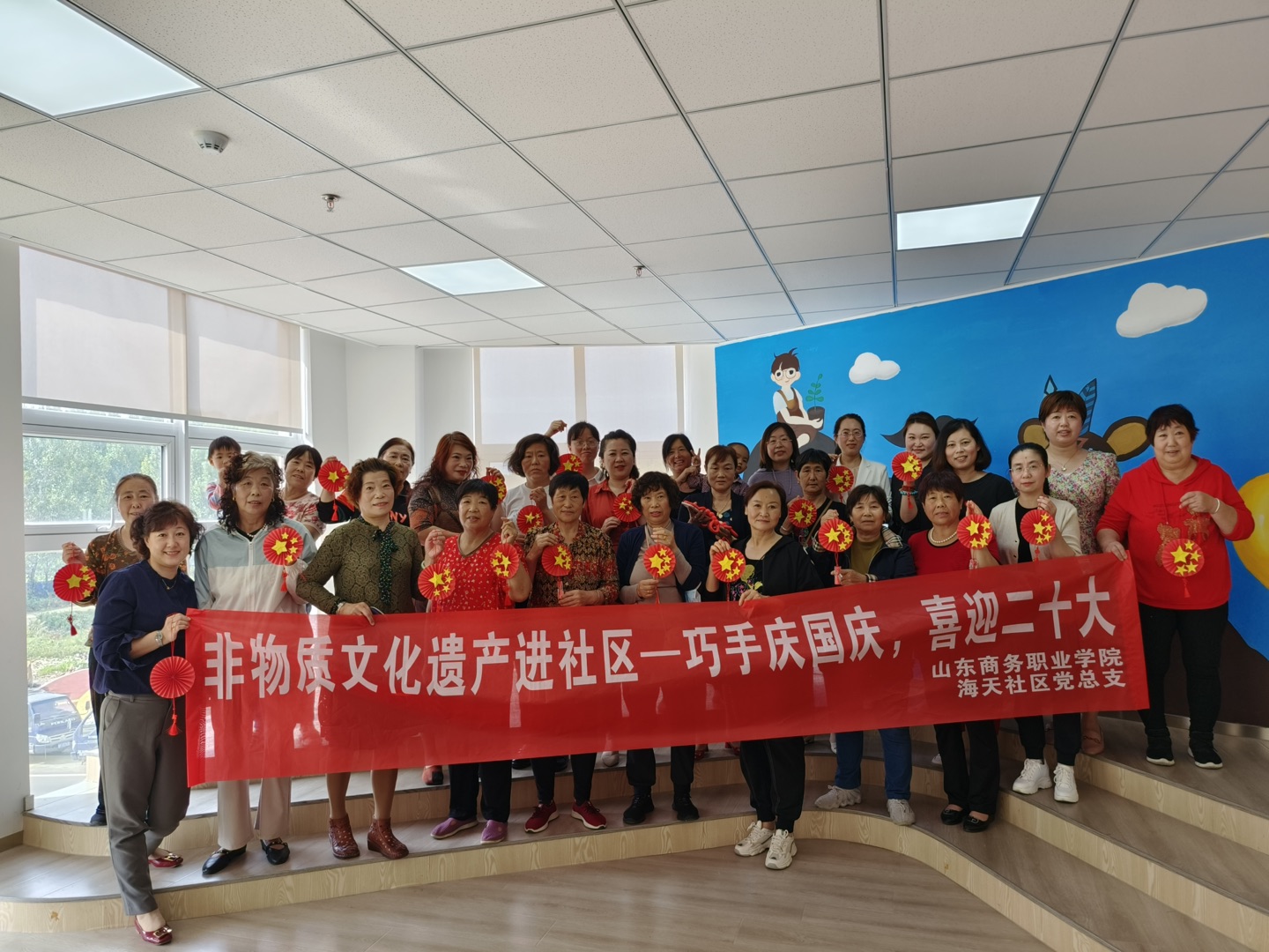 本站讯 为弘扬传统文化,厚植爱国爱党情,喜迎党的二十大胜利召开,扎实推进“双报到”工作走深走实,丰富社区居民生活。近日,学校会计金融学院、文化旅游学院联合马山街道海天社区党总支开展“非物质文化遗产进社区——巧手庆国庆,喜迎二十大”主题活动。