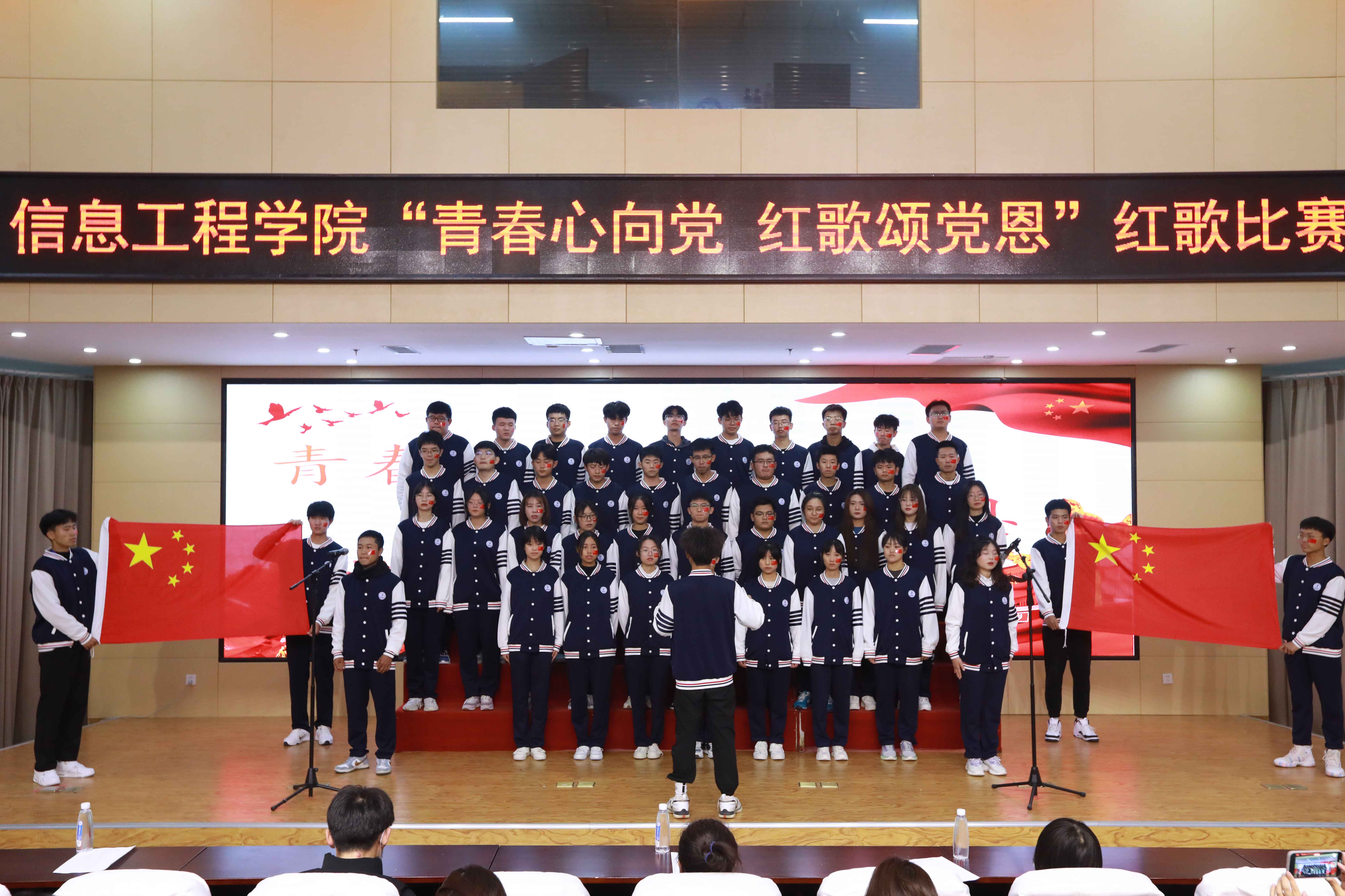同学们用高昂洪亮的歌声和旋律歌颂伟大建党精神,一首《光荣啊,中国共青团》唱出了信工学子对党、对祖国、对社会主义的炽热情感。《国家》《我爱你,中国》《没有共产党就没有新中国》《少年中国说》等一首首充满力量的歌曲,展现了信工学子爱党爱国爱社会主义的强烈情感、昂扬向上的精神面貌,嘹亮的声音唤起了慷慨报国的凌云壮志,气势磅礴的合唱博得了现场阵阵热烈的掌声。最终,经过激烈的角逐,最终评选出一等奖2名,二等奖3名,三等奖5名以及优秀奖5名。