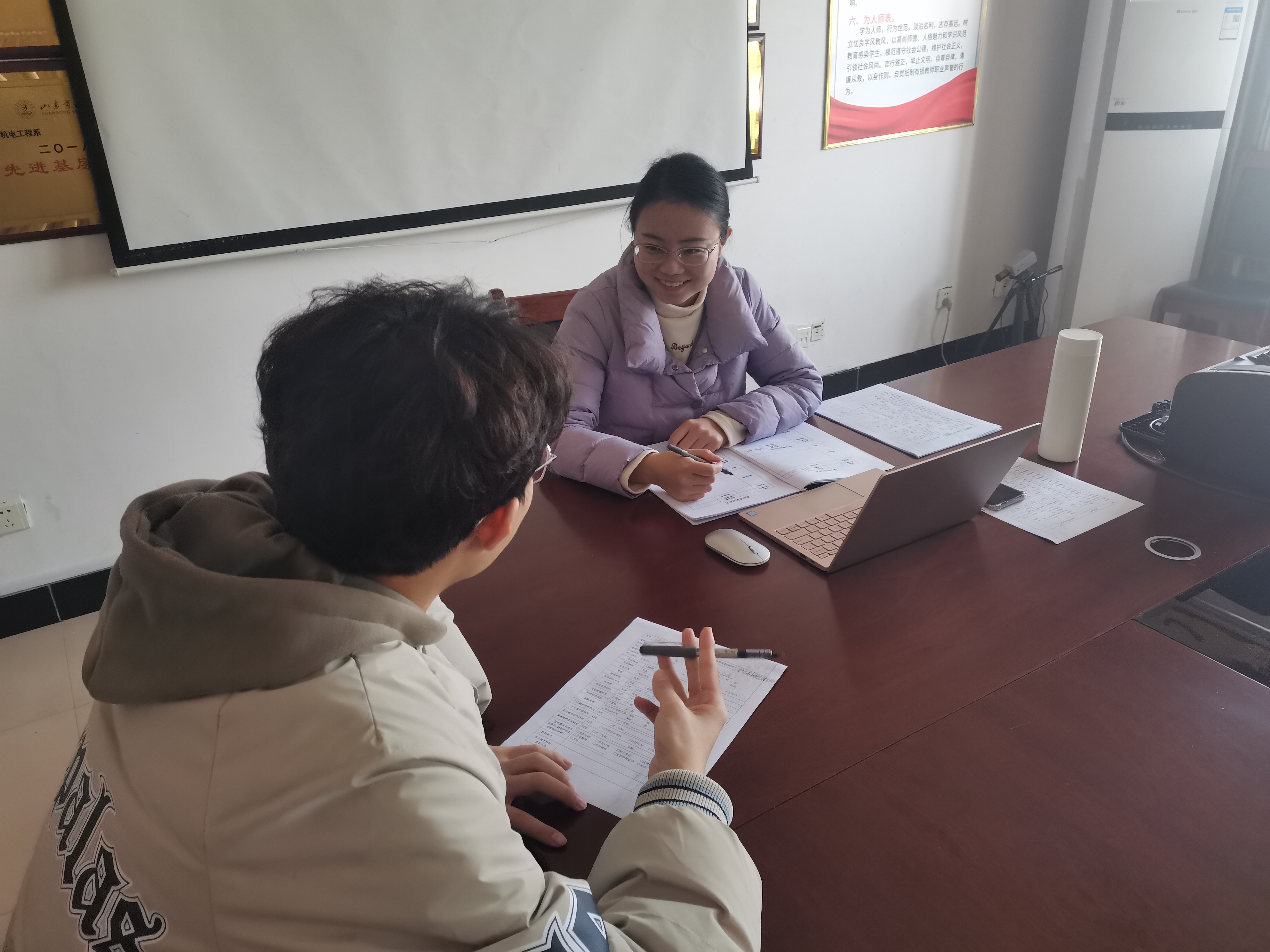 开展谈心谈话活动,心理暖心。为保证学生身心健康,及时了解师生需求,智能制造学院健全了党员干部、学业导师、辅导员、心理健康老师等组成的学生思想工作队伍。通过部门接待日、班会、走访宿舍、心理健康咨询等活动,了解学生需求,解决实际困难,让学生舒心。宣传讲解国家疫情防控政策、二十大报告等,让学生放心。至今,累计谈心谈话超过1300人次,谈话时长超过600小时。
