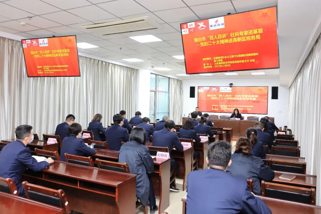 本站讯 为全面、深入、系统学习党的二十大精神,深刻领会习近平新时代中国特色社会主义思想,我校思政部积极组织党的二十大宣讲团成员在校内外开展宣讲。近日,我校党的二十大宣讲团成员、思政部教研室主任孙猛到高新区税务局开展党的二十大精神专题宣讲,以实际行动贯彻领会党的二十大精神。