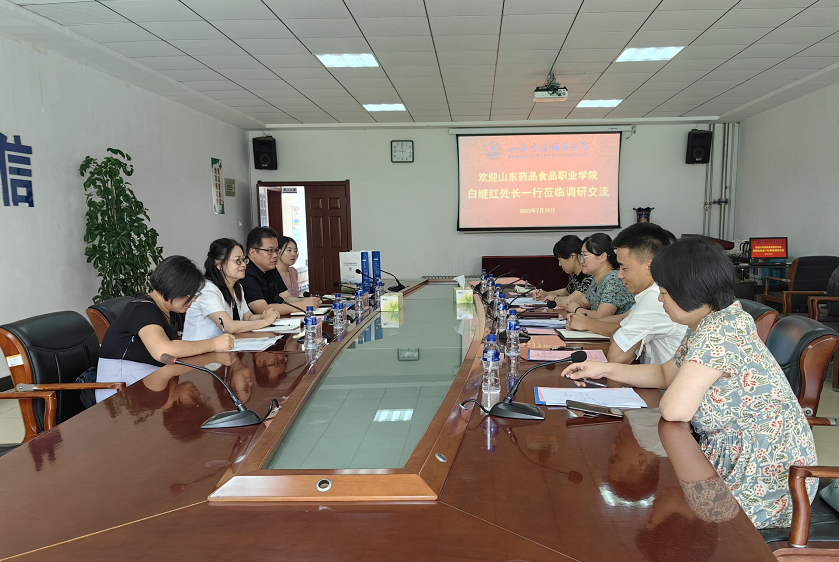 本站讯 7月18日上午,山东药品食品职业学院审计处处长白继红等一行4人来我校调研交流。我校资产管理处处长迟丹凤主持座谈,审计室及资产管理处相关工作人员参加座谈。