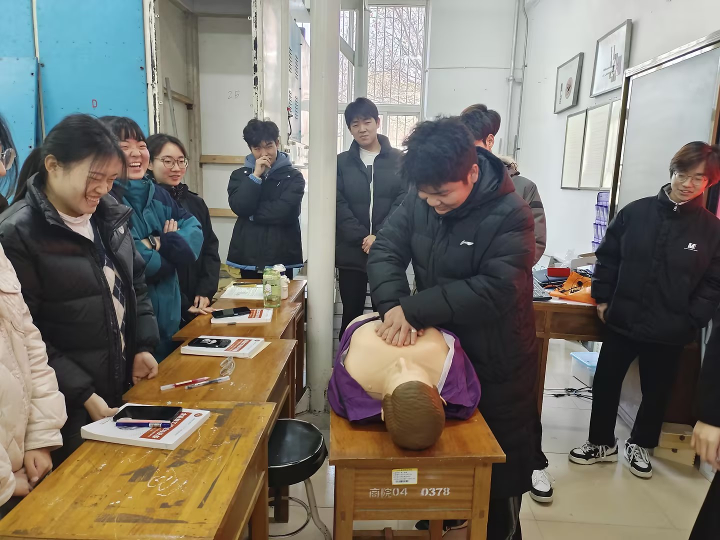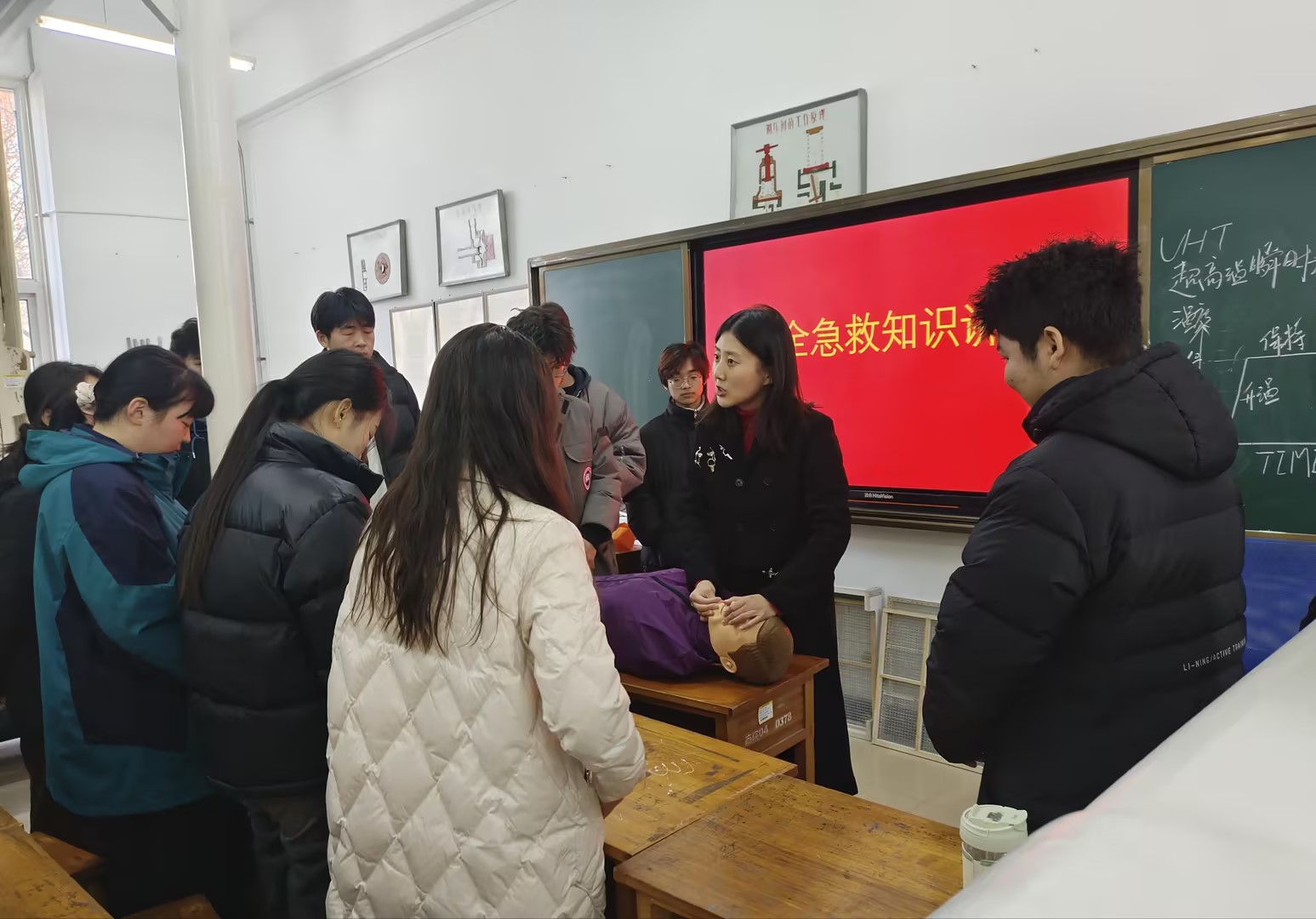 救护白,织起急救网络。为加强学生应急救护能力,提升学生自救互救意识与技能,学院依托学生“一站式社区”,选拔40余名“社区志愿者”进行红十字会救护知识培训。培训的四名辅导员老师均考取了红十字会救护员证,开展了充分的集体备课,将授课技巧、培训要点、心理援助等内容与场景模拟深度融合。在培训现场,对社区志愿者进行了运动知识普及、救护概论、心肺复苏、创伤救护和常见急症、意外伤害、突发事件应对等培训,全方位确保志愿者们全面系统地了解掌握应急救护知识,提高应对突发事件的现场救护能力。