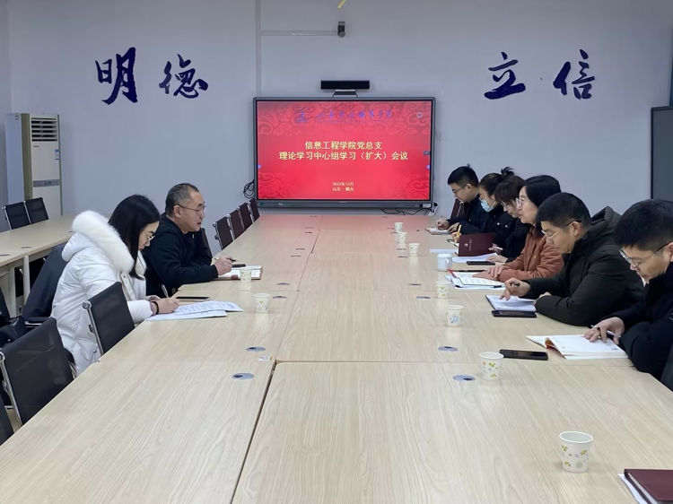 本站讯 12月22日,信息工程学院党总支在信息实训楼E203召开12月份党总支理论学习中心组学习(扩大)会议。学校列席旁听工作组成员赵海成、衣英霄列席会议。会议由信息工程学院党总支书记肖永霞主持。