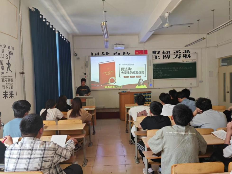 班级学法,法治教育全覆盖。学院以主题团课、班会为载体,由班主任、辅导员老师带领同学们开展法治学习,系统学习图解版民法典有关内容。学习内容图文并茂、深入浅出,使同学们对民法典有了全面且系统的理解和掌握,加深学生们对民法典的理解和认识。
