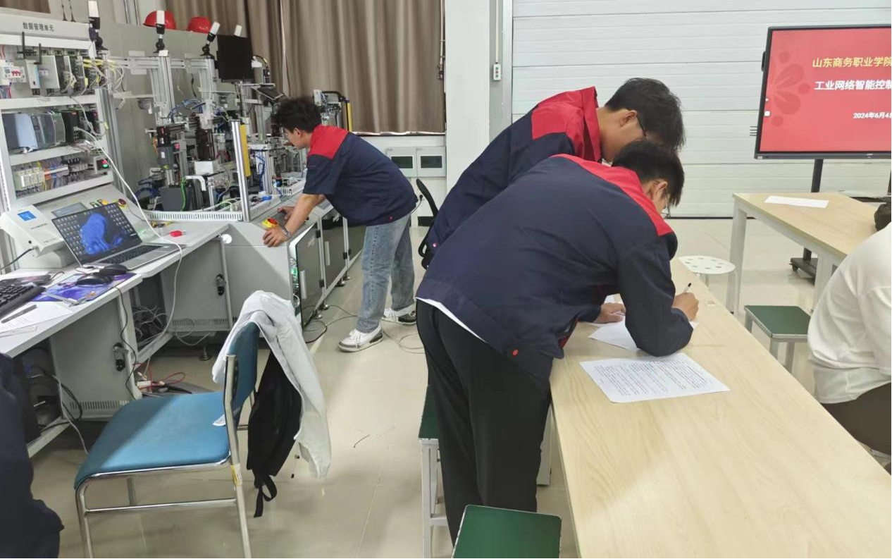 本站讯 6月4日,智能制造学院在实训楼C106举办“工业网络智能控制与维护”技能大赛。本次比赛旨在提高电气自动化技术专业学生的实践技能水平,同时选拔优秀人才,为装备制造类专业的创新与发展注入新的活力。