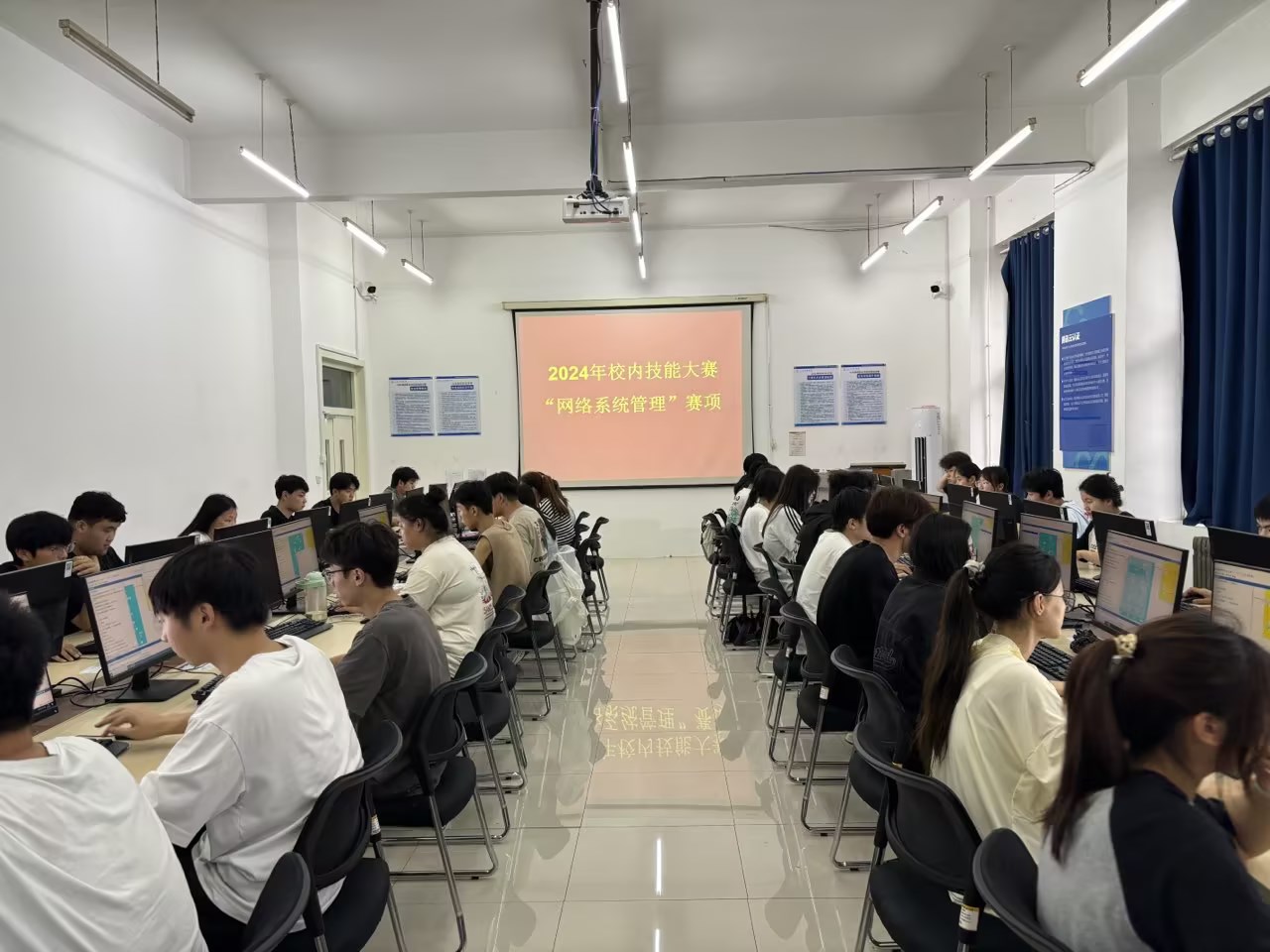 本站讯 6月11日,信息工程学院在E110实训室成功举办了2024年校内技能大赛“网络系统管理”赛项。本赛项由网络专业精心策划和组织,旨在深化学生的网络系统管理知识,提升学生在实际操作中的技能水平,同时也为学生提供了一个实践和展示的平台。