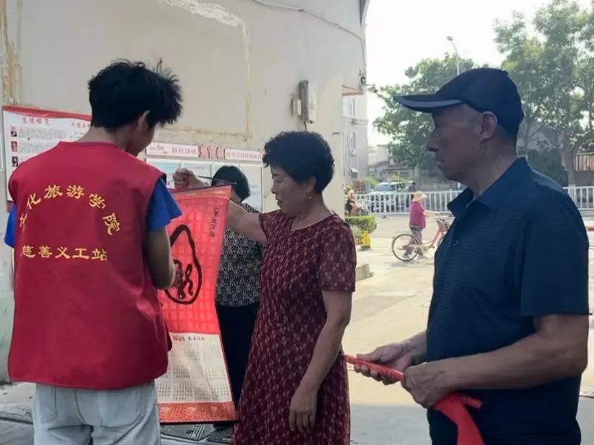除了关心关爱儿童,志愿者们还特意慰问了社区的老人。他们为老人们送去了由学校副校长陶传蔚设计的“一笔生肖福”日历,并与老人们亲切交流,了解他们的生活状况和需求。这份礼物不仅让老人们感受到了温暖和关怀,还传达了“有福气”的美好祝愿。