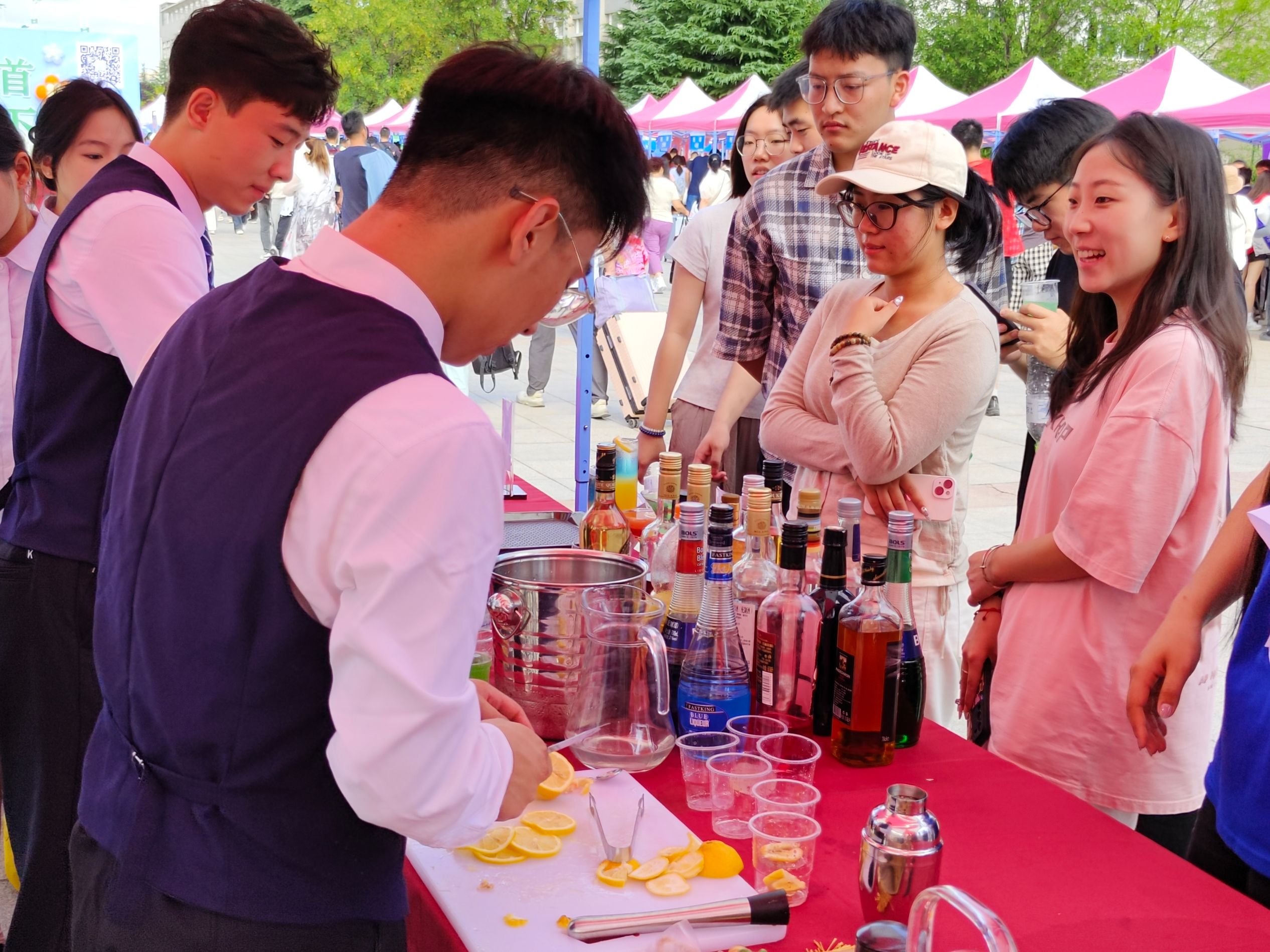 特色迎新,心意满满。在迎新活动中,学院现场设置了“金色序章 青春同行”主题打卡区,新生和家长们纷纷与迎新展板合照,大家笑容明朗,充满对大学生活的憧憬和期待。学院为新生订制了2024级主题迎新手环,包含了“文通四海 旅智未来”“七彩学院 多彩人生”祝福。学院充分展示专业特色,开展了特色调酒、茶艺表演和学前教育手工展,TS调酒与茶礼社的精彩表现为炎炎夏日带来了丝丝清凉,让新生和家长直观地了解专业的实际应用,充分体现了学院“学以致用、实践育人”的教育理念。