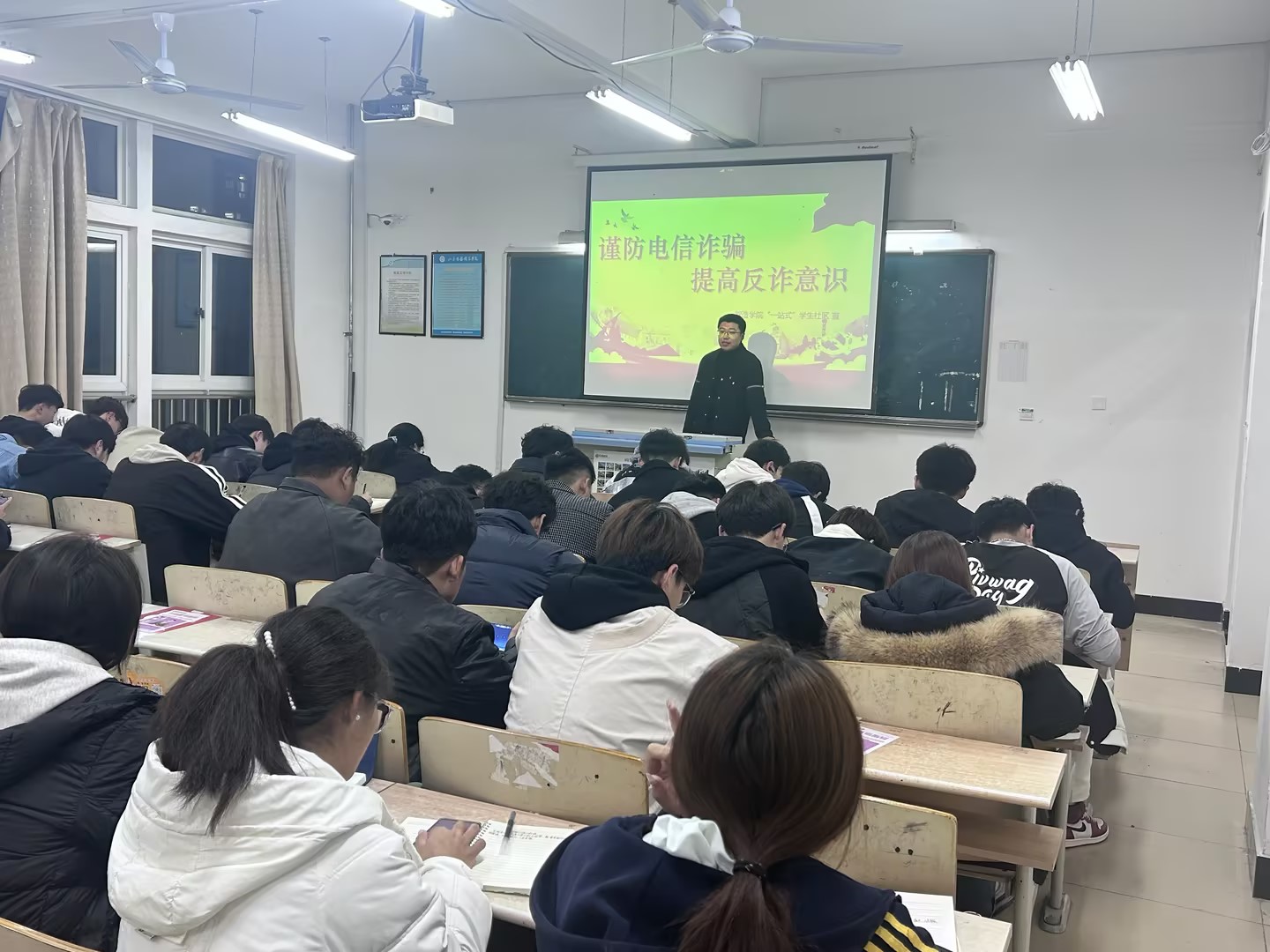 反诈宣传讲座,敲响反诈警钟。为有效防范电信网络诈骗,让同学们直观感受到诈骗现象的严峻形势,学院举行多场反诈宣传讲座,用生动的案例作为切入点,讲解网络贷款诈骗、刷单诈骗、冒充公检法诈骗等各种诈骗手段,传授详细防范方法,同时特别强调了个人信息保护的重要性,建议学生不要轻易透露个人资料,包括银行账户、身份证号、密码等敏感信息。讲座过程中同学们全神贯注,不时在笔记本上记录重点内容,还有不少同学积极提问,与主讲人进行互动。讲座得到了积极响应,同学们纷纷表示受益匪浅,“本次讲座不仅增强了我识别网络电信诈骗的能力,更提升了我防范网络电信诈骗的水平,希望能经常举办这样的讲座”,23数控3班李慧哲说道。