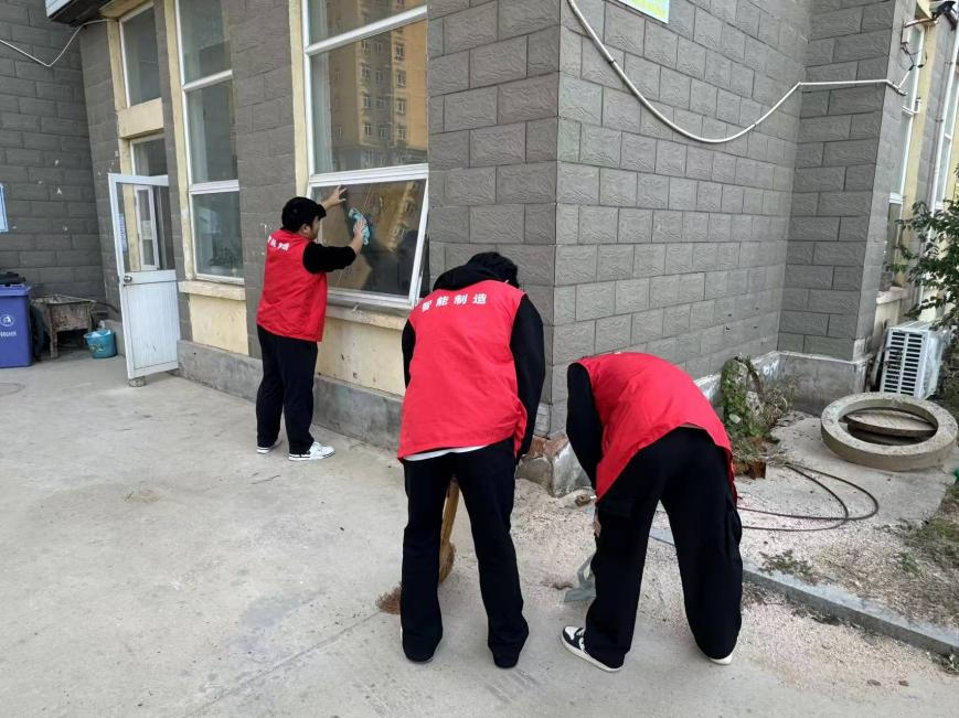 志愿服务活动,温暖社区民心。学生支部部分党员教师带领志愿者走进海兴社区开展志愿服务活动。活动当天,党员教师和学生代表组成的志愿者队伍早早地集合完毕,身着统一的志愿者服装,有序进入社区进行卫生清扫。在社区街道上,师生们两两一组,认真清扫每一个角落,遇到口香糖之类的顽固污渍,志愿者们蹲下身子,用小铲子耐心地铲除;面对街道旁的垃圾桶,大家不怕脏臭,将散落的垃圾清理干净,并对垃圾桶进行擦拭消毒;针对楼道墙壁上形形色色的小广告,志愿者们有条不紊的小心刮除,宣传栏也被擦拭得干干净净;志愿者们还对楼道的扶手进行了擦拭,为居民的日常出行提供了便利。