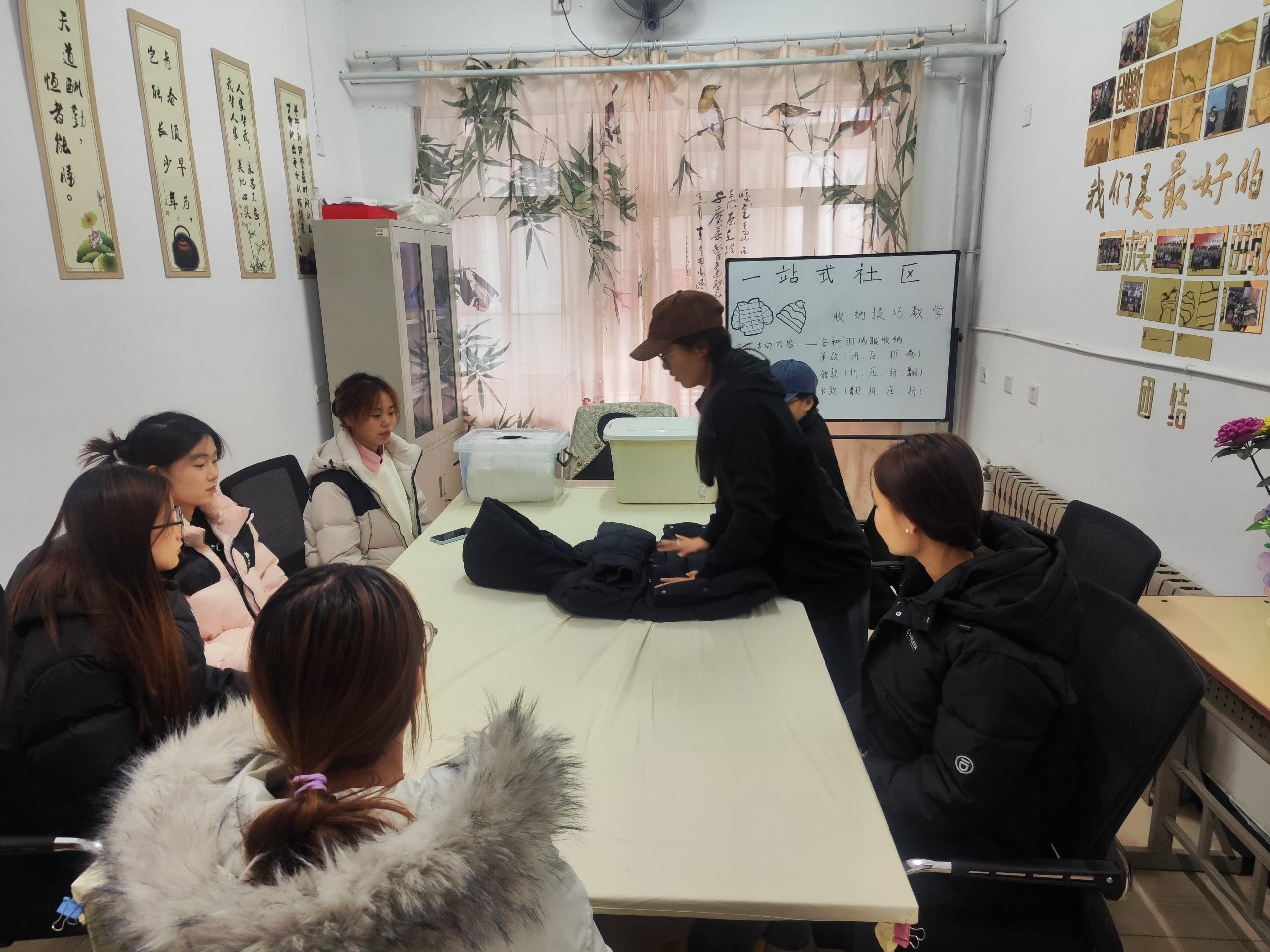 本站讯 11月26日,为了帮助学生有效管理日益增多的厚重衣物,经济管理学院“一站式”社区特别举办了一场以“秋冬衣物收纳技巧”为主题的培训活动。此次活动旨在教授学生如何在有限的宿舍空间内,合理收纳秋冬季节的衣物,同时培养良好的收纳习惯。