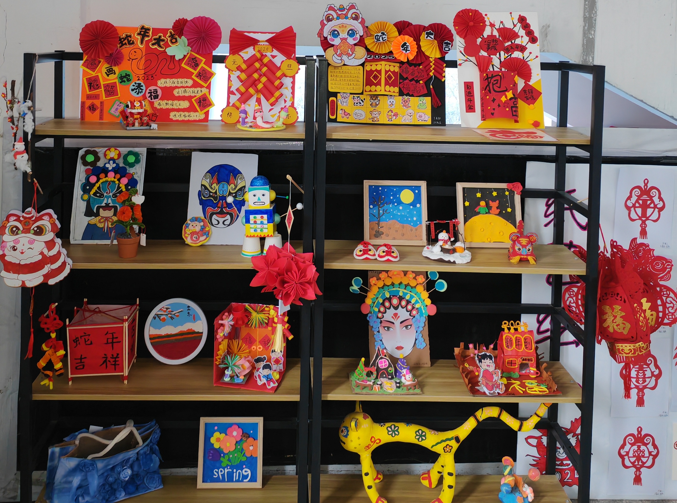 活动现场,一幕幕匠心独运的手工作品琳琅满目。一张张红艳艳的彩纸在同学们灵巧的双手中,变成了栩栩如生的生肖动物和洋溢着喜庆氛围的窗花。纸雕作品构思细腻,层次分明的结构搭配精心雕琢的图案,彰显出同学们的耐心与创造力。此外,由各种废旧材料制成的环保手工艺品同样引人注目,它们不仅传达了环保理念,更展现了同学们化腐朽为神奇的智慧。这些作品中,有的以旧瓶子为基底,巧手改造成别致的新年灯笼;有的则利用易拉罐,精心打造成为别具一格的装饰摆件。它们以独特的视角和形式,诠释着新年的欢乐和对未来的美好憧憬,让活动现场洋溢着浓厚的节日氛围。