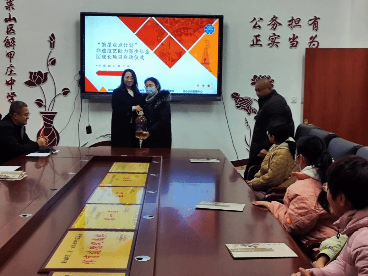 本站讯 近日,经济管理学院微微公益与解甲庄街道、解甲庄中学、金心公益发展中心联合举办的“繁星点点计划”非遗技艺助力青少年全面成长“解甲庄中学非遗志愿服务队”成立仪式在解甲庄中学举行。