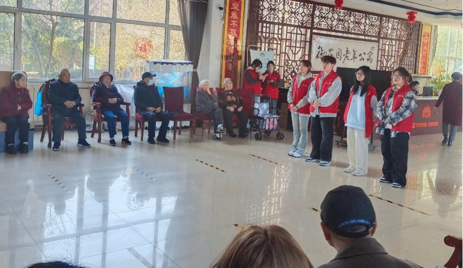 本站讯 3月23日下午,艺术设计学院“一站式”学生社区联合御花园老年公寓,开展了一场温馨满满的“传承敬老情,青春暖夕阳”主题活动。此次活动不仅为老人们送去了关怀与欢乐,更在互动交流中实现了一场跨越岁月的精神传承。