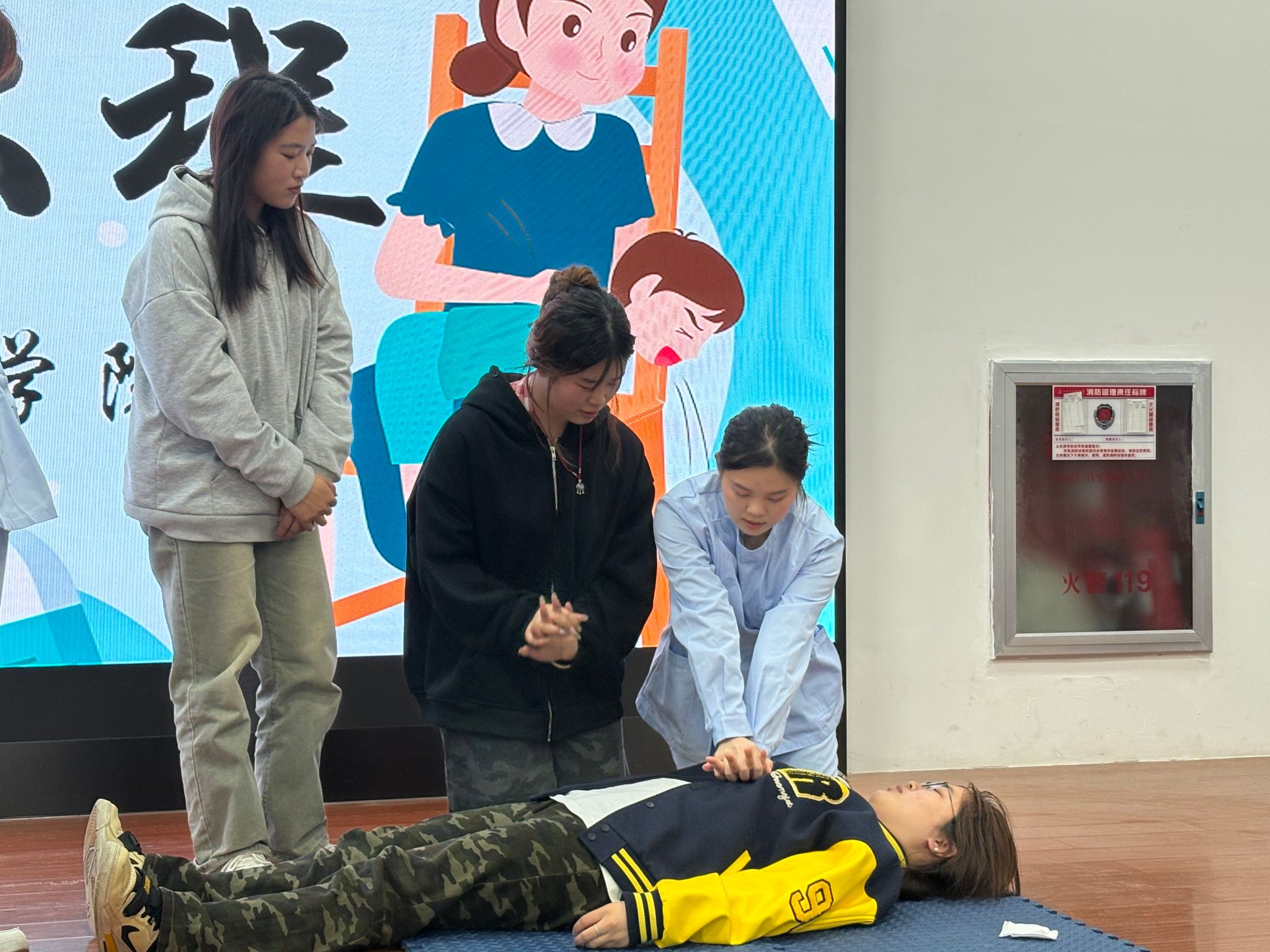 活动特邀婴幼儿托育服务与管理专业的同学进行现场指导,通过“理论讲解+视频教学+情景模拟”的多元化教学方式,系统传授了心肺复苏术、海姆立克急救法等关键救护技能。培训结合大学生身边的真实案例,深入浅出地讲解了急救黄金时间的把握、规范操作流程等专业知识,并借助专业人体模型进行分步示范,确保每位参与者都能准确掌握技术要领。23级应用韩语2班周文婕同学表示:“这次培训让我受益匪浅,尤其是实操环节,专业人员手把手指导让我掌握了规范的急救手法,建立了在紧急情况下施救的信心,我也会把这些救命技能教给更多同学。”