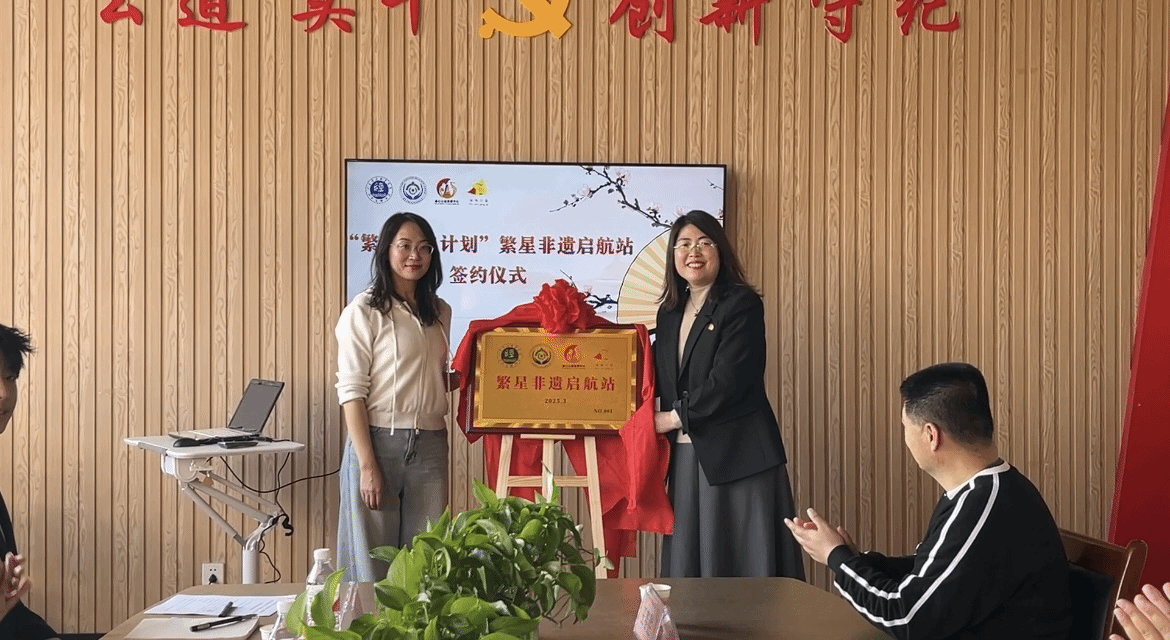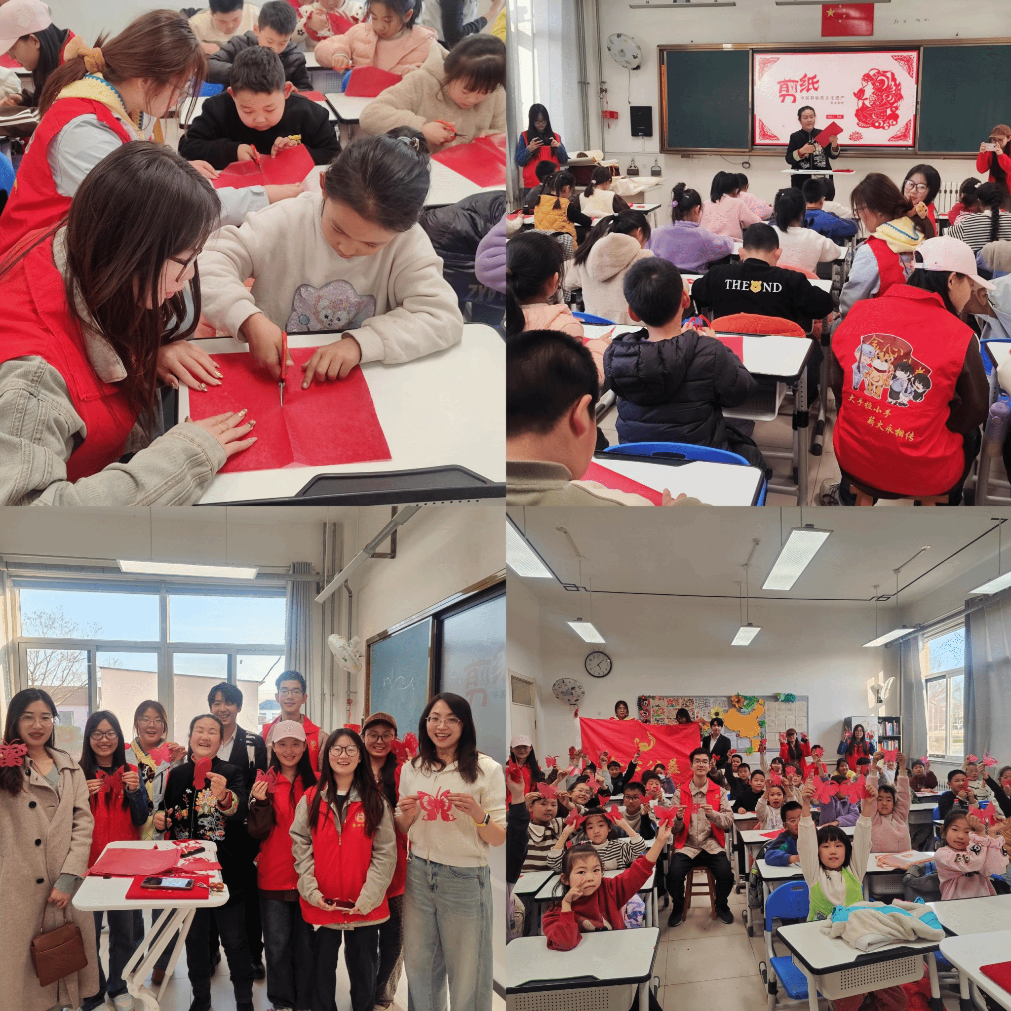活动伊始,经济管理学院副院长谢慧详细介绍了该项目。非遗文化与乡村儿童教育相结合意义重大,该项目对于非物质文化遗产传承以及大学生社会责任感培养具有积极促进作用。随后,谢慧为烟台剪纸非遗传承人李凌老师颁发“繁星点点计划”教师聘书,正式聘请李凌老师担任该项目的非遗文化教学教师。与朱塂堡小学校长孙美荣共同为“繁星非遗启航站”揭牌,标志着该站点正式启用,“繁星点点计划”项目正式启动。