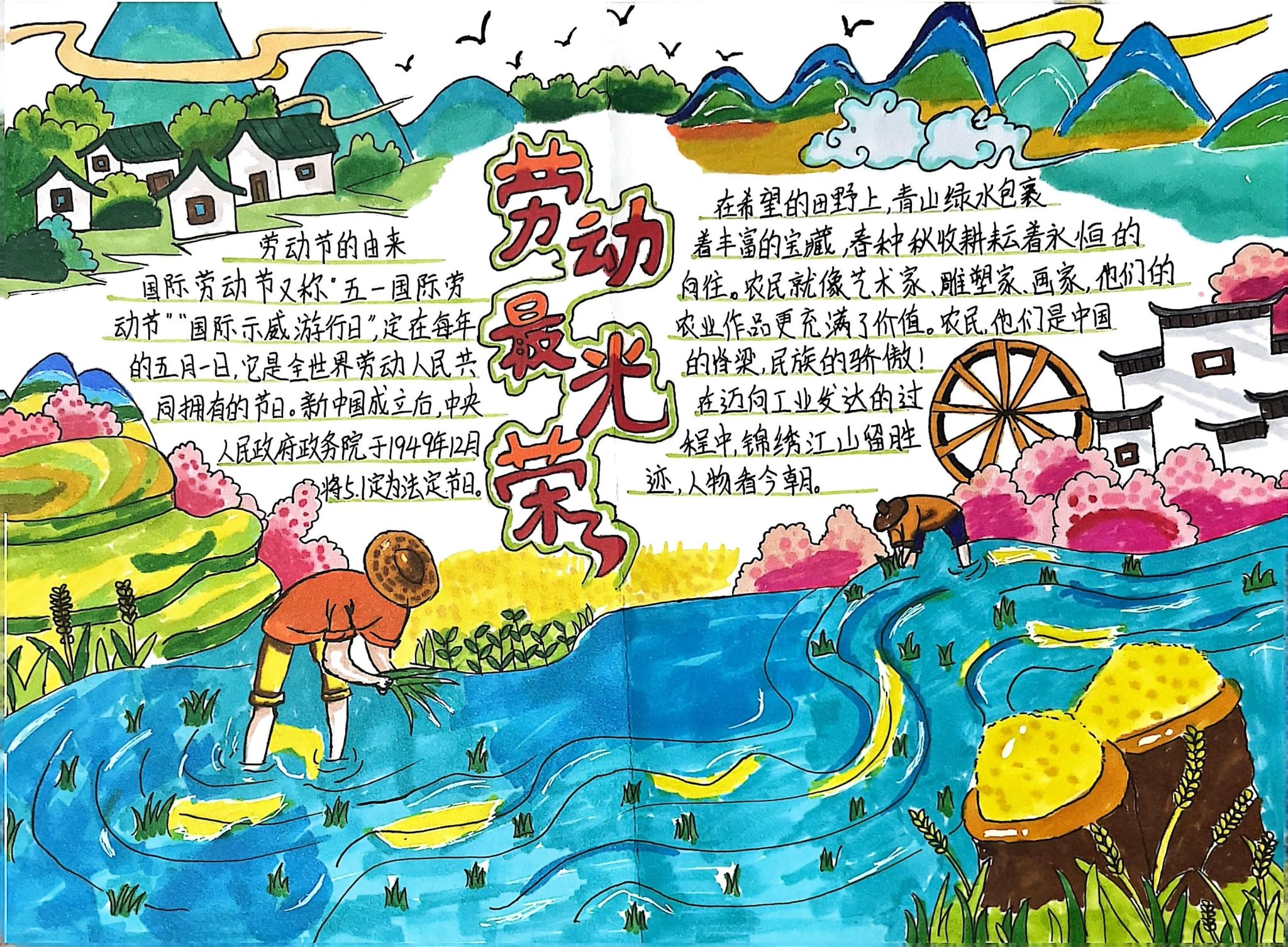 以墨绘心,定格劳动之美。在“海报设计与展示”环节,同学们纷纷拿起画笔,用敏锐的艺术之眼捕捉校园里那些平凡而又动人的劳动场景。一幅幅海报作品犹如时光的胶片,将一个个劳动瞬间定格成永恒:凌晨时分在氤氲热气中忙碌的食堂阿姨;彻夜值守守护校园安全防线的保安大叔;夜晚为我们留灯的宿管阿姨;微微佝偻清扫落叶的保洁人员……这些海报作品色彩斑斓、构图巧妙,充满了感染力与思想深度,让观者在欣赏艺术之美的同时,深刻领悟到劳动的价值与意义。