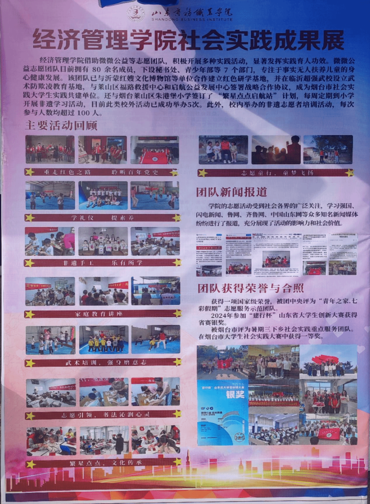 本站讯 为全面展示学生综合素质教育成果,培养学生良好精神风貌与社会责任感,5月15日,经济管理学院开展“礼耀青春 益路同行”学生综合素质成果展。活动通过动态展演与静态展示相结合的方式,立体呈现了学院在培养学生综合素质方面的创新实践与丰硕成果。