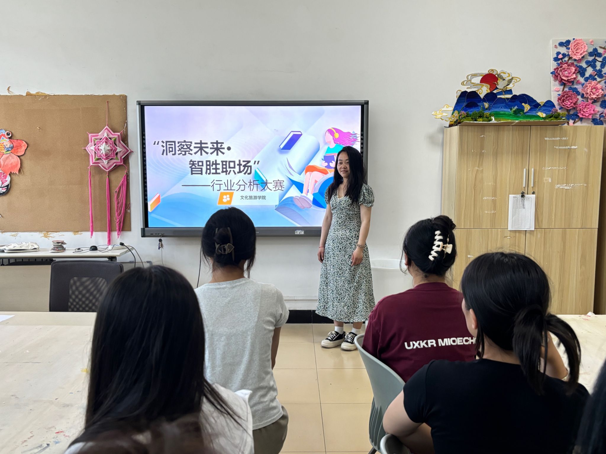 本站讯 为助力学生深入了解行业动态,提升专业素养与实践能力,搭建校企交流与学术探索的优质平台,5月19日,文化旅游学院在美术手工教室举办行业分析大赛。本次活动吸引了学院23级、24级各专业同学热情参与。