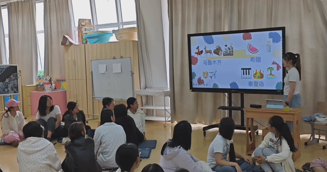 活动现场,“糖衣炮弹”游戏率先拉开帷幕。老师将学生分为每组8人左右的小组,发放彩色便利贴后,同学们在5分钟内将赞美话语写在贴纸上制成“糖果”。随后,大家有序送出“糖果”,遵守规则完成传递与接收。组内交流时,朗读赞美词的声音此起彼伏,每个人脸上都洋溢着幸福笑容。紧接着,“绳笔写字”游戏登场。3—6人一组,用绳子系笔共同书写“5·25我爱我” 。尽管控制笔的走向困难重重,但在小组成员默契配合下,饱含自我关爱的话语最终呈现,让同学们深刻体会团队合作与关爱自我的意义。“地名猜猜乐”环节充满紧张刺激。老师展示图片后,两组同学激烈抢答,大家全神贯注、争相举手,现场气氛热烈。该游戏既拓宽知识面,又激发了团队荣誉感。最后,“情绪画卷”游戏将活动推向高潮。10分钟内,同学们用彩笔描绘当下或近期情绪体验。展示环节中,一幅幅色彩斑斓的画卷、一个个真挚的故事,不仅让同学们更清晰觉察自身情绪,也在分享中增进了彼此的理解与情感共鸣。