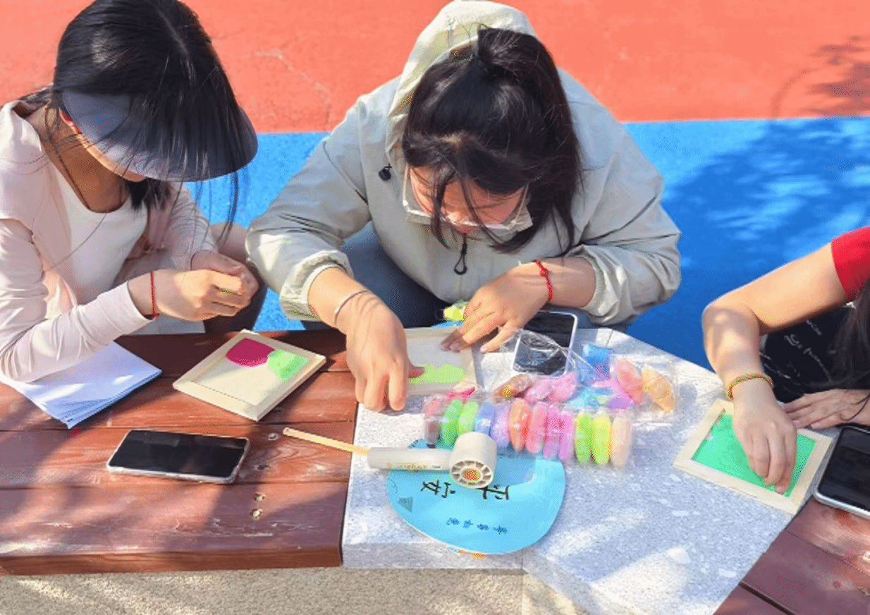 黏土情绪画区域成为学生表达内心的“秘密花园”。同学们将七彩黏土在掌心揉捻、塑形,通过色彩碰撞与立体构图,将未说出口的焦虑、藏在心底的期待,具象为可触摸的艺术形态。有人用深蓝与银白勾勒“深夜独处的宁静”,有人用明黄与橙红堆砌“朋友相聚的温暖”,每幅作品都是独一无二的心灵切片。活动中,同学们自发分享创作故事,在黏土的柔软质感中卸下心防,于交流互动中感受“被看见”的力量。