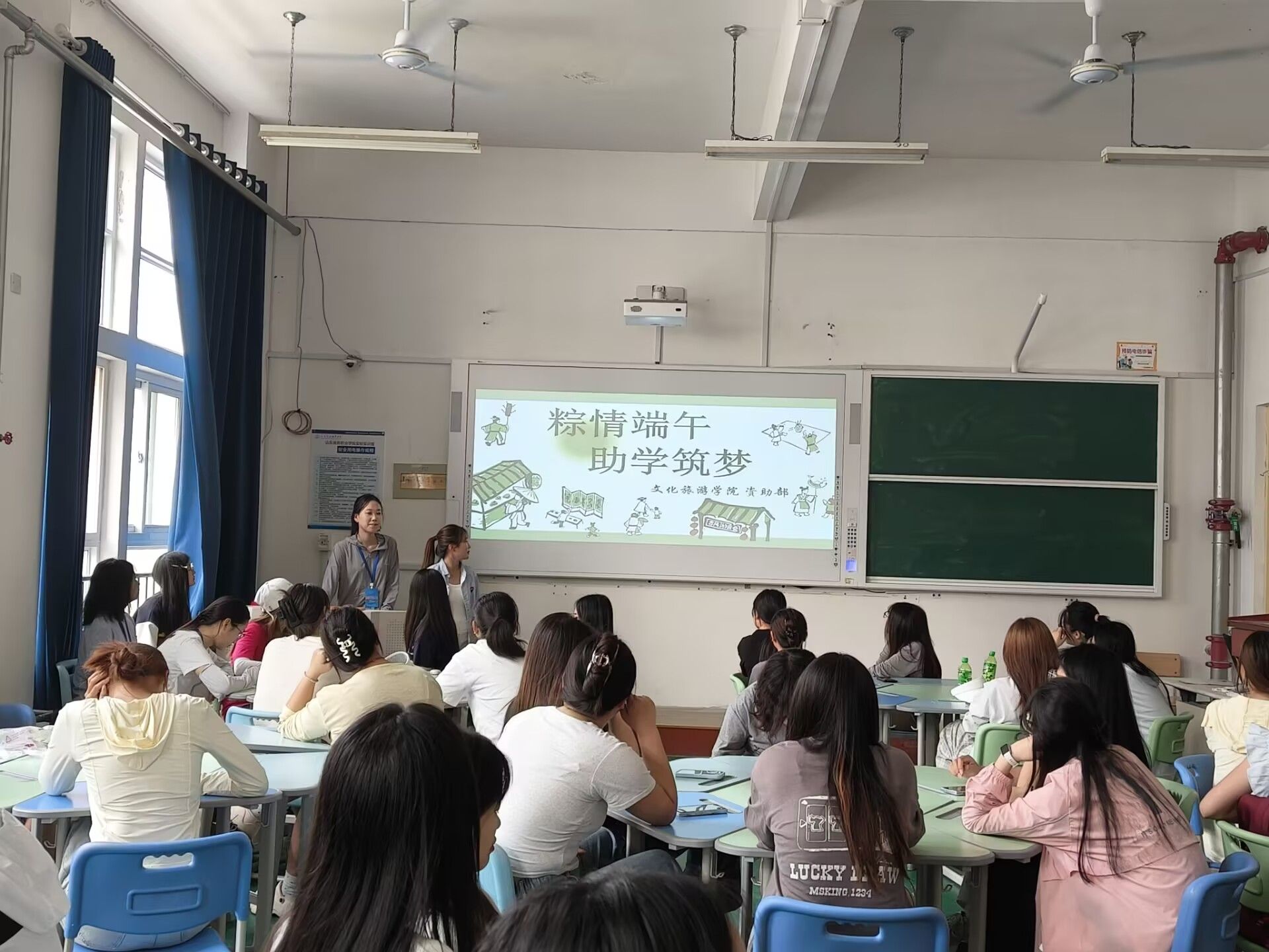 妙问趣答,知识碰撞启新思。“端午快问快答”环节巧妙地将端午文化知识融入紧张刺激的知识竞答。“屈原诗作《离骚》中‘路漫漫其修远兮’的下一句是什么?”“端午佩戴的五彩绳蕴含哪些吉祥寓意?”等兼具知识性与趣味性的问题轮番抛出,同学们或旁征博引,或结合自身对民俗的认识,展开热烈讨论,在轻松愉快的氛围中,让端午文化知识深入人心。