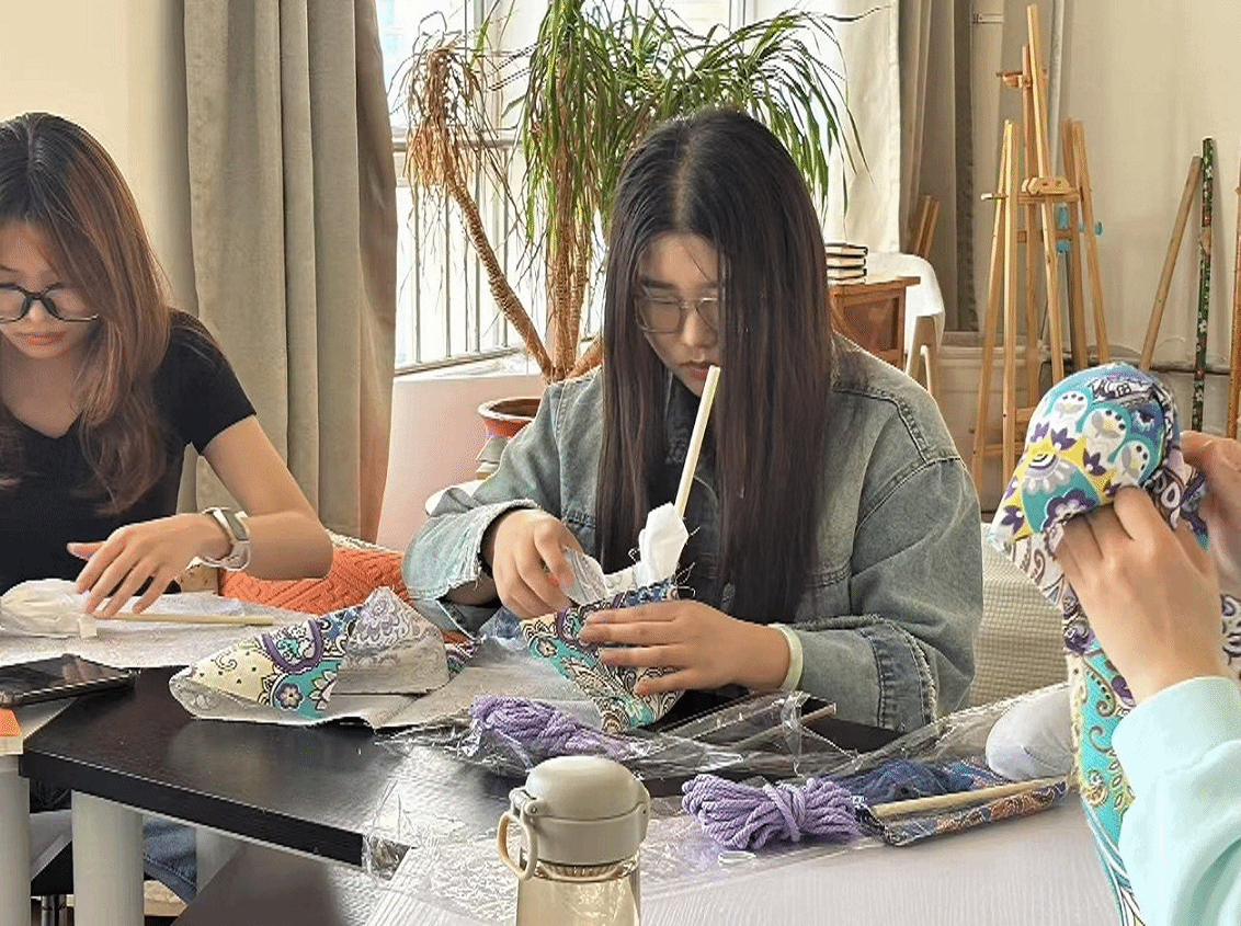 香囊手作:药香盈袖传智慧。“手作香囊,古韵留香”活动将养生与美学结合。活动提供藿香、佩兰、薄荷等具有驱蚊避疫、提神醒脑功效的中药材,学生们根据喜好搭配传统纹样,缝制出兼具装饰性与实用性的香囊。同学们在交流和亲手制作香囊的过程中深刻感受古人将养生与生活美学结合的智慧。从选料到配色,从穿针到引线,一个个绣着梅兰竹菊的香囊不仅是手工艺品,更成为“未病先防”养生理念的载体,让药香与匠心在校园中流动传播。