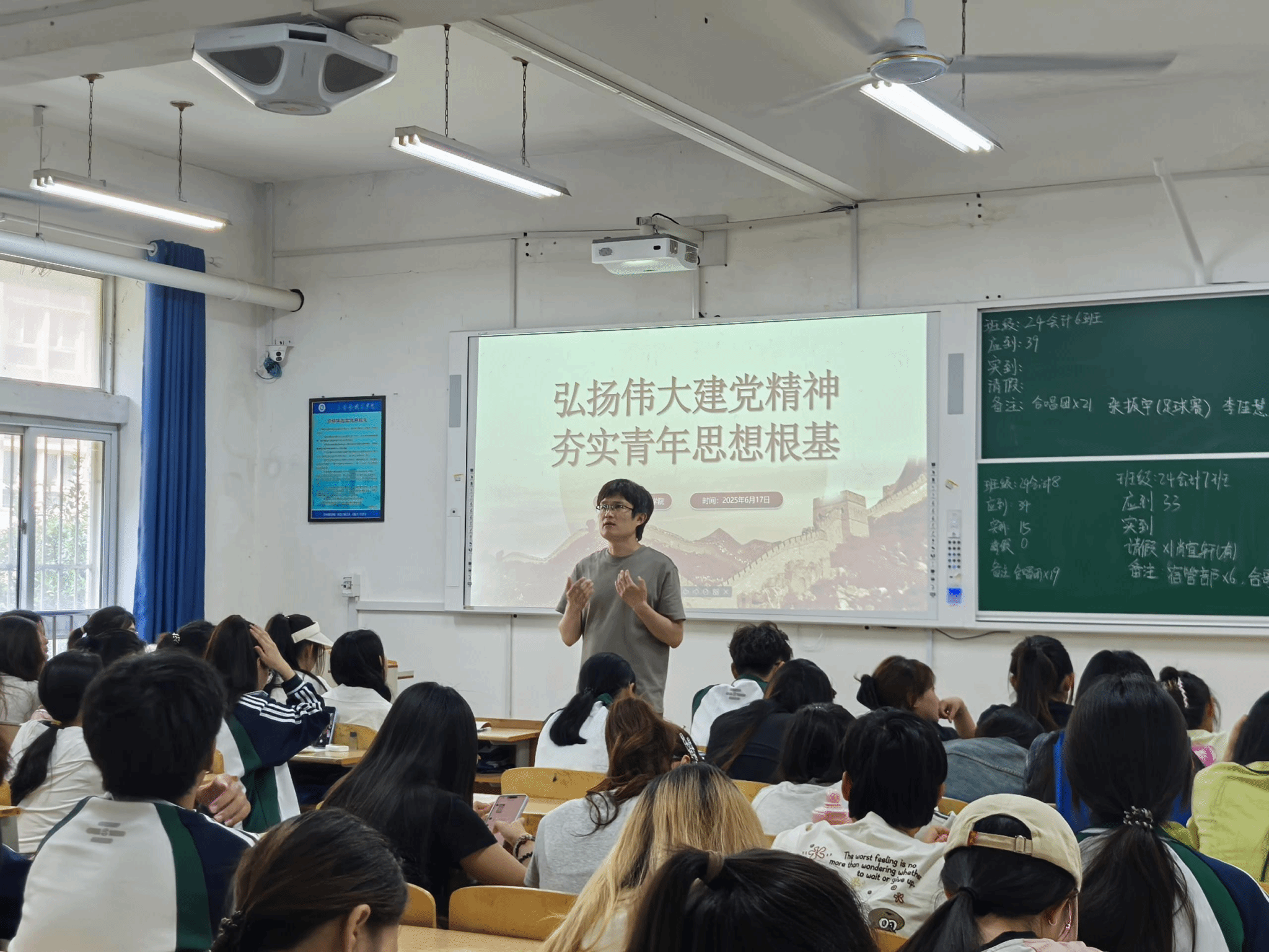 在课程互动环节,同学们积极发言,分享自己对伟大建党精神的理解和感悟。学生代表表示:“通过这次思政课,我深刻认识到伟大建党精神的强大力量。作为一名新时代的青年学生,我将以实际行动践行党的宗旨,努力学习科学文化知识,为同学们服务,为社会贡献力量。”同学们的发言充满热情与决心,展现了新时代青年学生积极向上的精神风貌。魏涛认真倾听每一位同学的发言,并给予鼓励和指导。