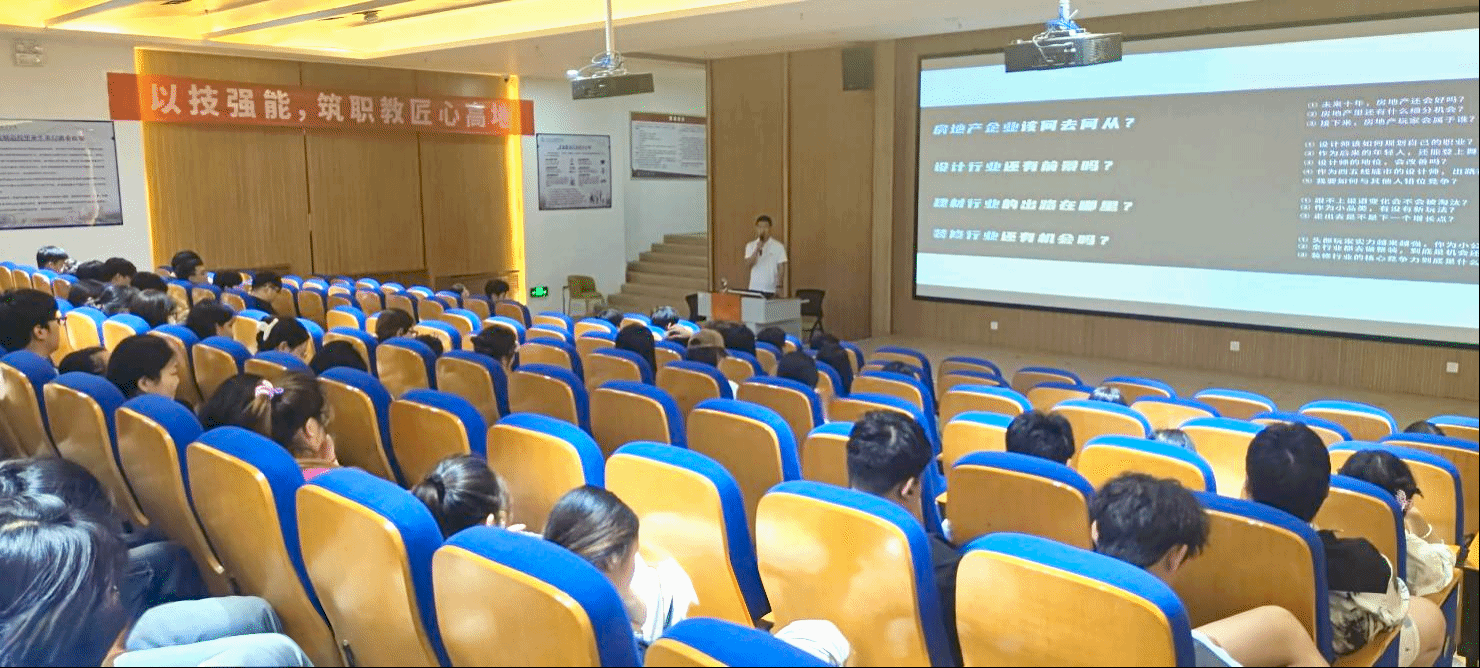 在讲座中,袁文着重于专业指导与能力构建,深入探讨了环境艺术设计与室内艺术设计专业学生的个性化职业规划,详尽阐述了各专业的核心技能框架,并通过结合实际案例与理论知识的方式,使学生们对自身专业在职业发展路径上的定位及所需具备的能力有了明确的认识。