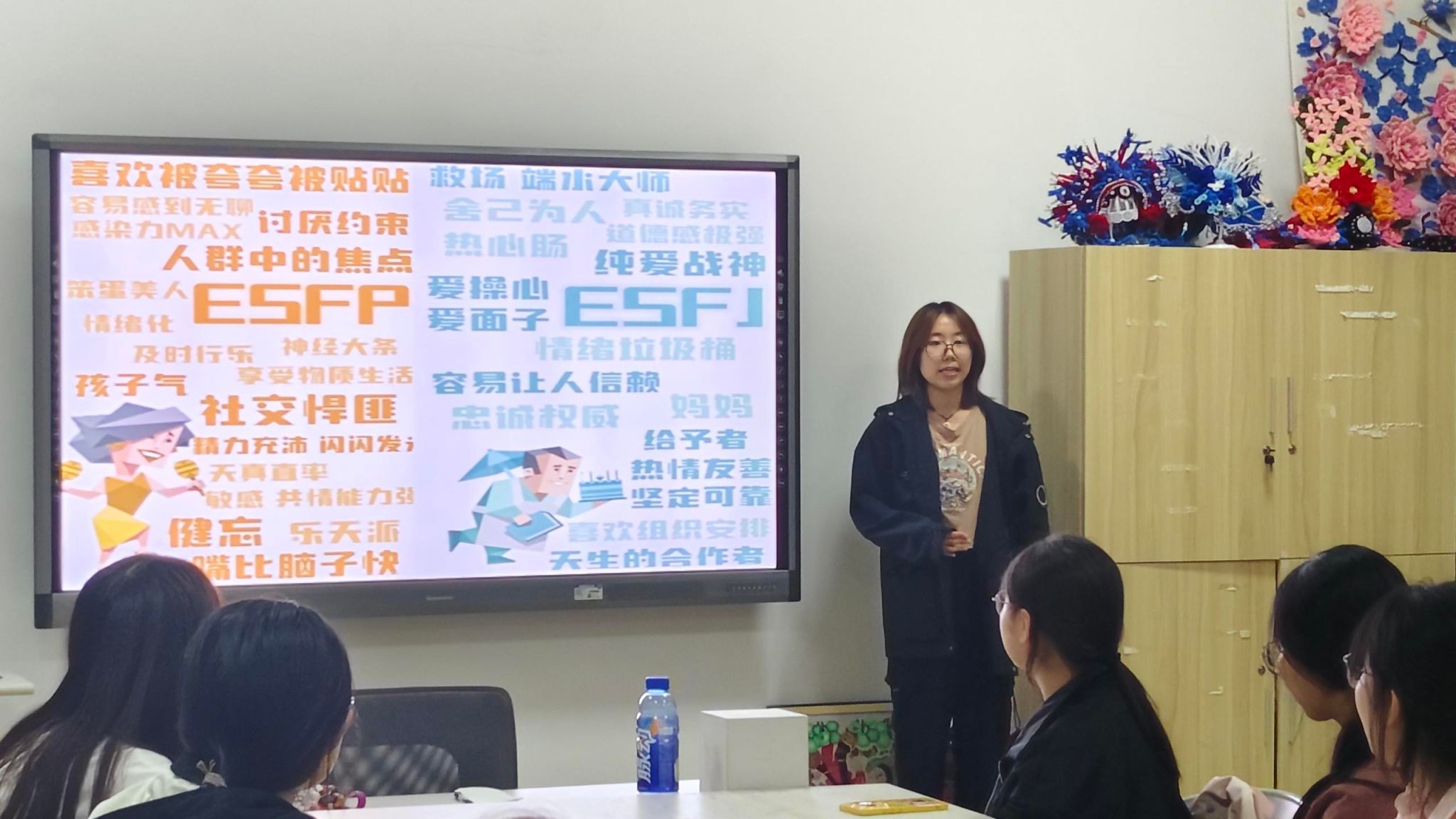 活动现场,发布专业 MBTI 测试问卷,组织参与活动学生测评了解自己是什么性格,学生查阅其性格分析报告,梳理自身性格的优势与不足,并结合所学专业的学习内容与岗位需求进行小组讨论。25级学前教育班 ISFJ 型的王佳雯说,“细心耐心的性格让我能快速关注幼儿情绪,可临场应变不足,接下来要多参与模拟课堂”;25级应用日语1班INFJ 型的李昂提到,“自己擅长深入研究语法适合做翻译,但口语不自信,打算多去日语角练习”;24级旅游1班 ESTJ 型的于可可则表示,“自己作为一名旅游专业学生,有条理的性格有利于其规划目标,但缺乏灵活性,会学习根据游客需求调整自身”。各专业的学生经过了共同探讨后,结合自身情况纷纷点明了自己的优点和不足,有了清醒的自我认知,为未来职业规划打下了坚实的基础。