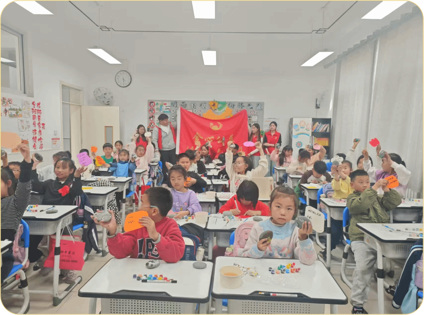 本站讯 9月28日,经济管理学院微微公益志愿服务团队携手烟台市莱山区朱塂堡小学,共同开展“繁星点点计划”之非遗石画美术课程。作为该计划的第三课,本次活动聚焦非遗石画美术传承,致力于将传统文化融入校园教育,特别关注困境儿童的成长与发展,实现非遗传承与教育公益的有机结合。