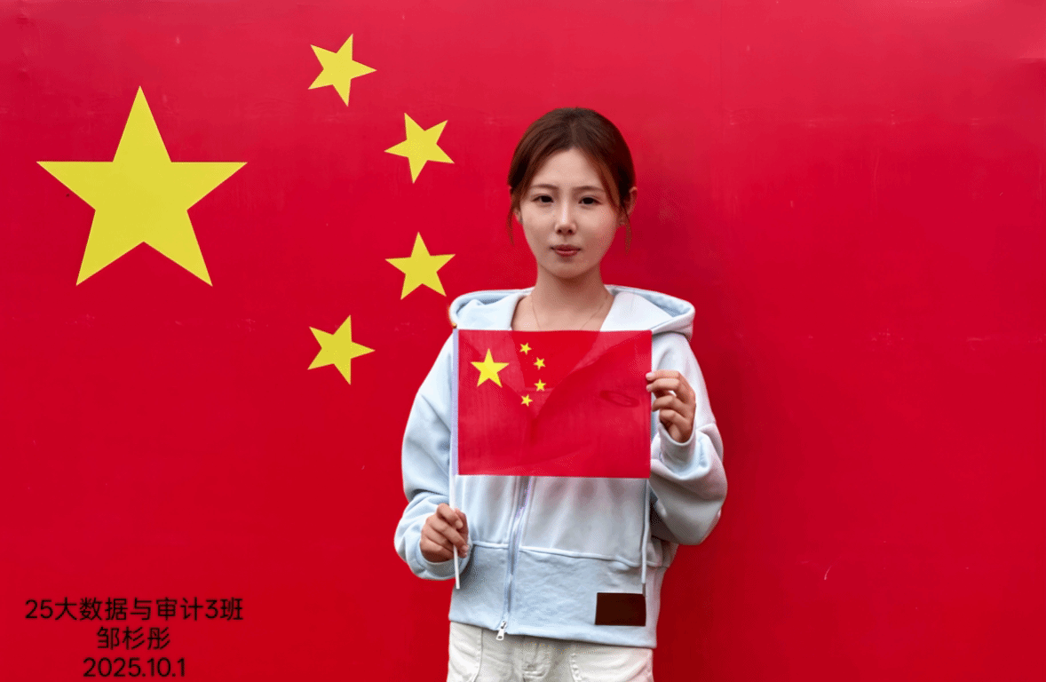 本站讯 为拉近红色历史与青年学生的情感距离,激发广大同学的爱国热情,营造庄重而热烈的国庆氛围,10月1日至8日,会计金融学院组织开展“青春与国旗同框”创意合影活动,号召2024级、2025级全体同学以创意影像为载体,抒发爱国情感,传递时代强音。